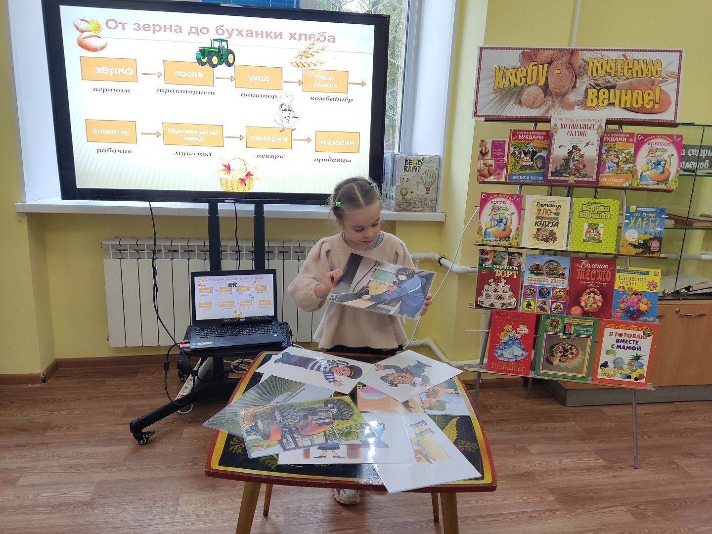 В рамках мероприятия ребята познакомились с историей появления хлеба на наших столах и узнали о том, как раньше люди выращивали хлеб, о его длительном пути от зерна до ароматной булки, а также о различных обрядах и традициях, связанных с этим продуктом.