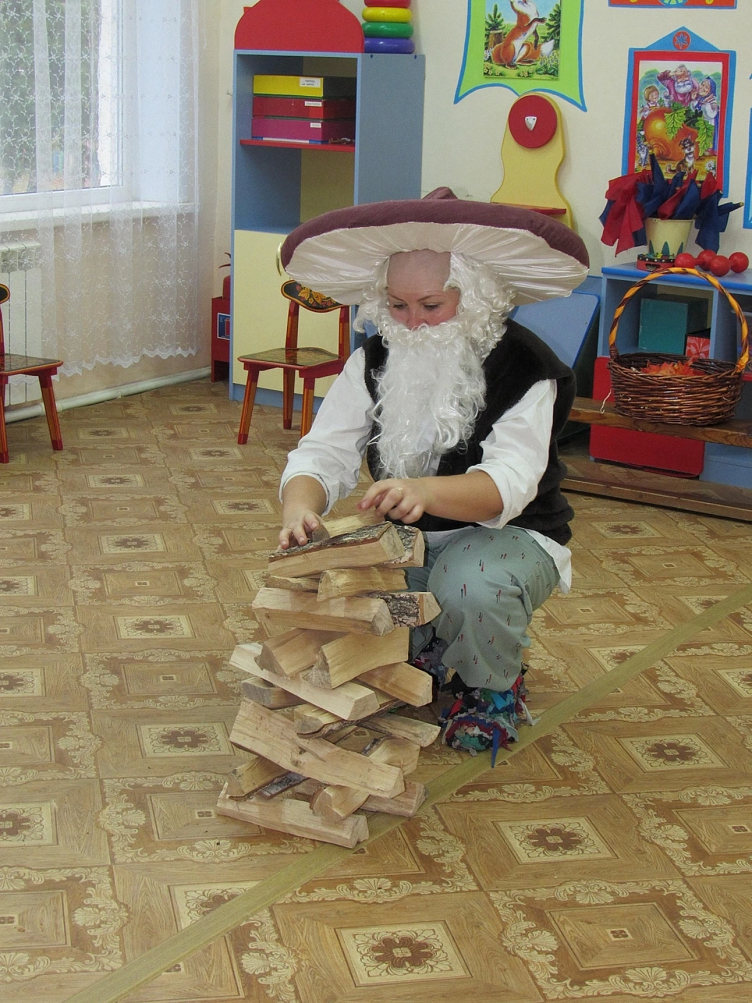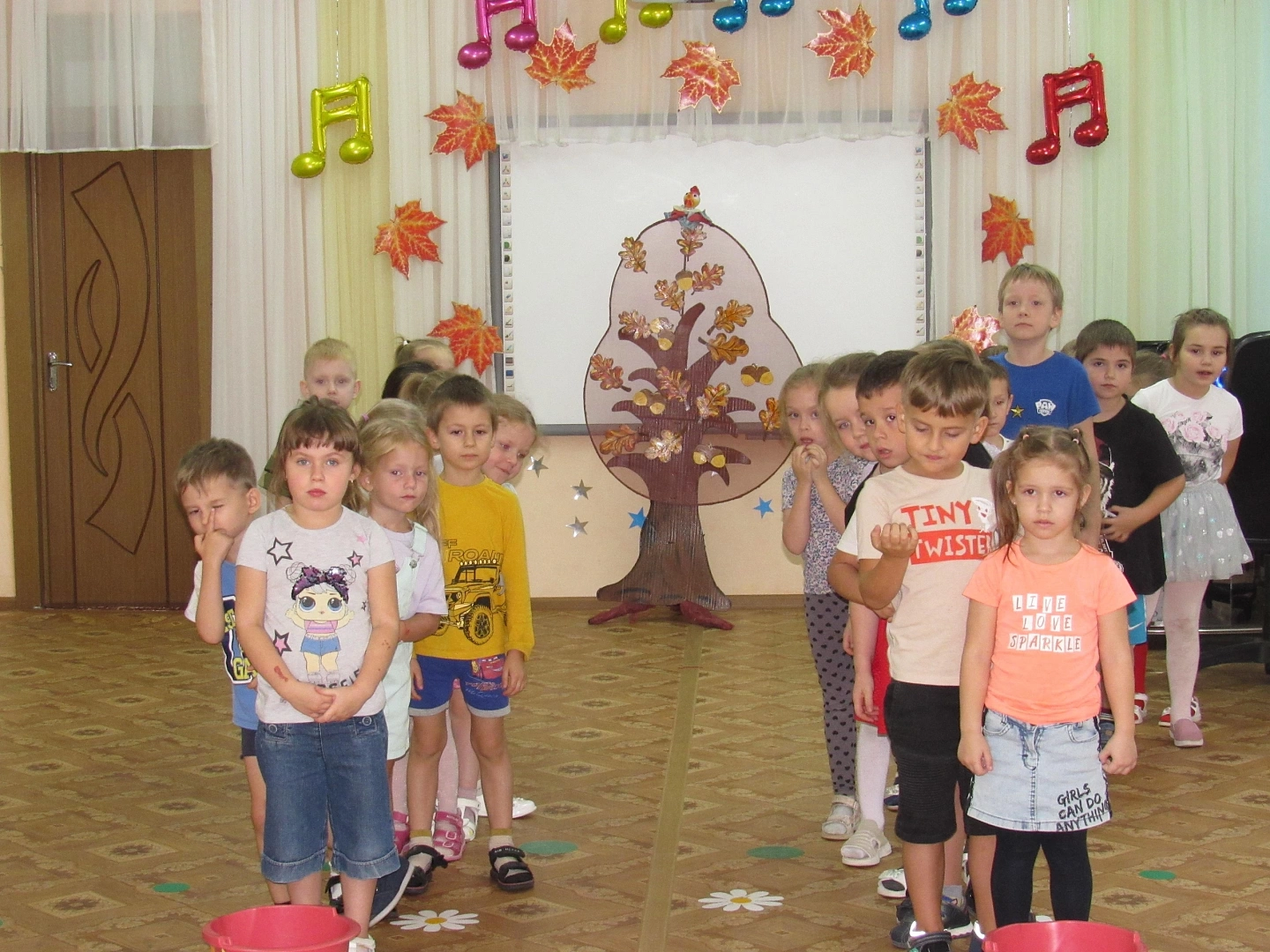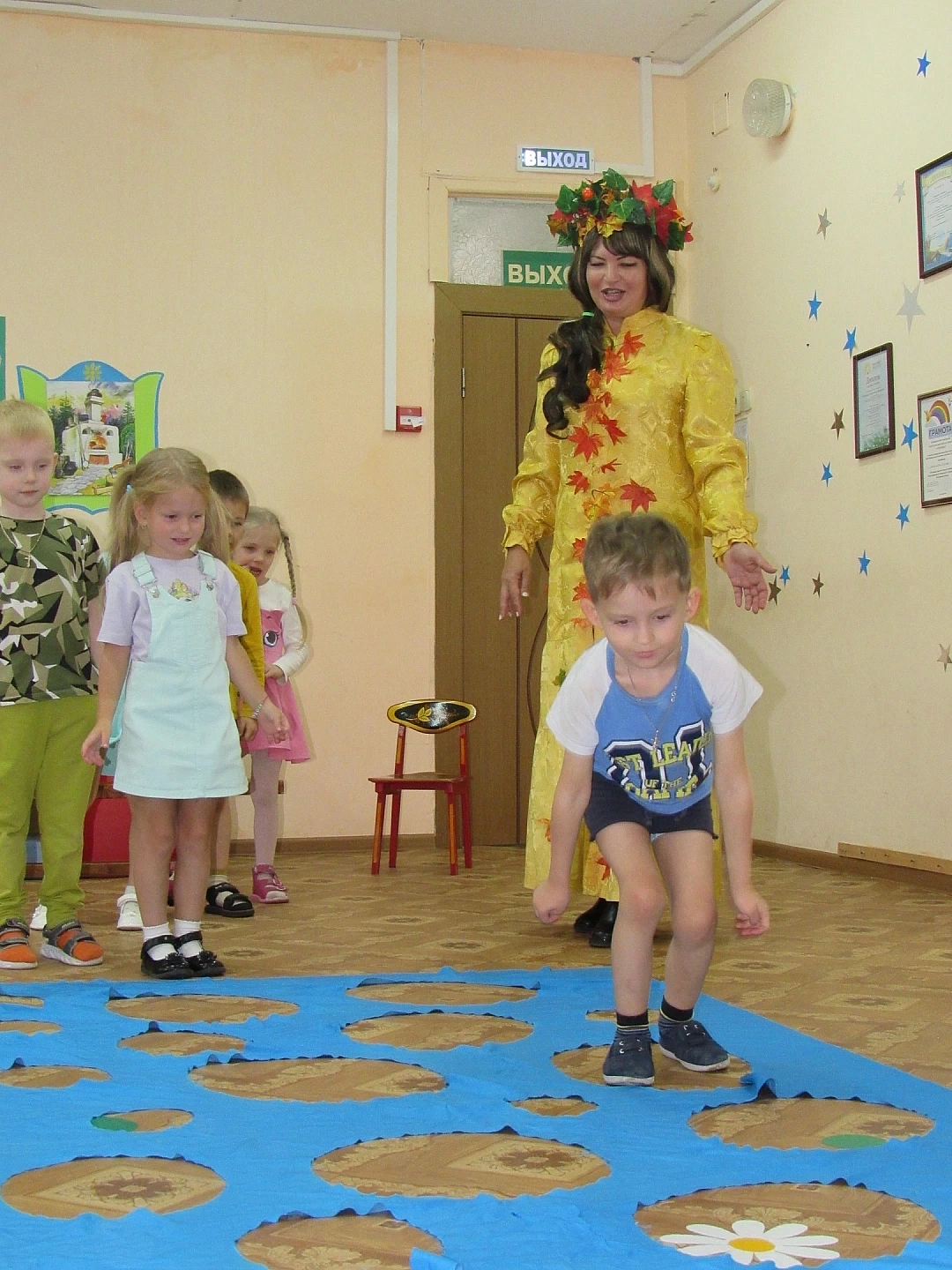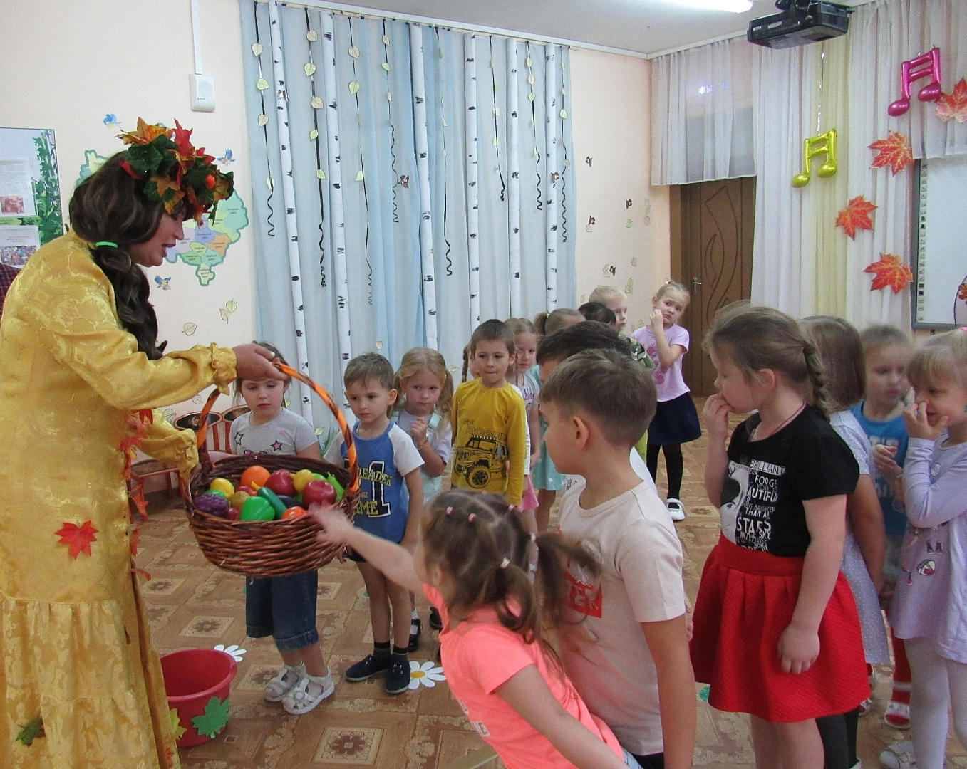 В гости к ребятам пришли сказочные герои: красавица Осень и добродушный Старичок-боровичок. Ребята с огромным удовольствием пели песни, танцевали, играли в такие игры, как "Собери урожай", "Перепрыгни через лужи", "Запаси дрова на зиму".