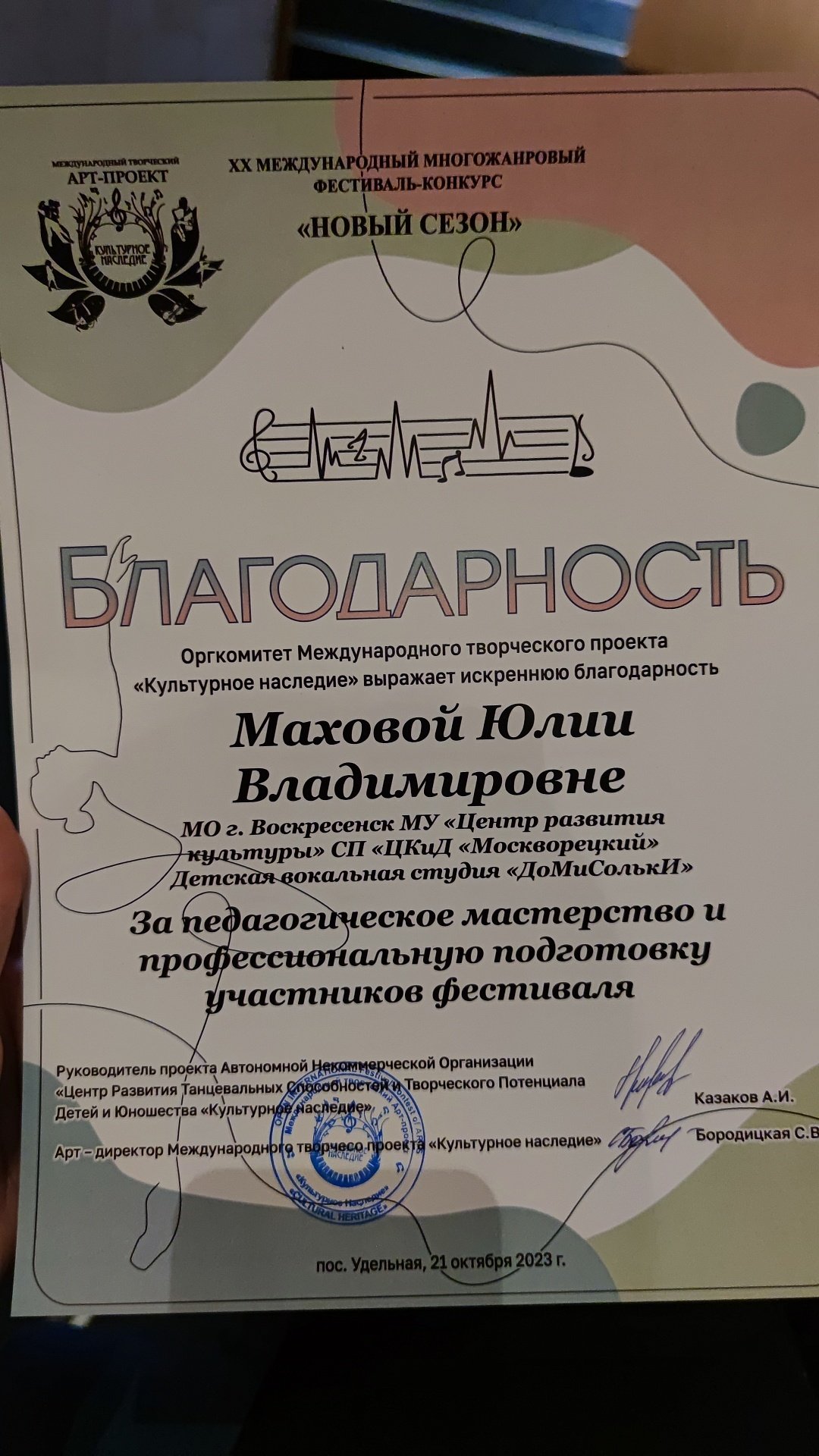 Достижения детской вокальной студии "ДоМиСольки" в XX Международном фестивале — конкурсе «Новый сезон»