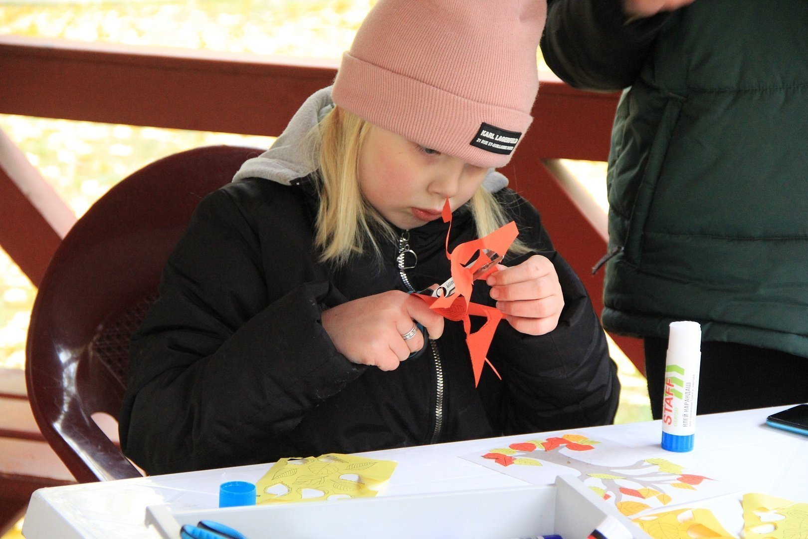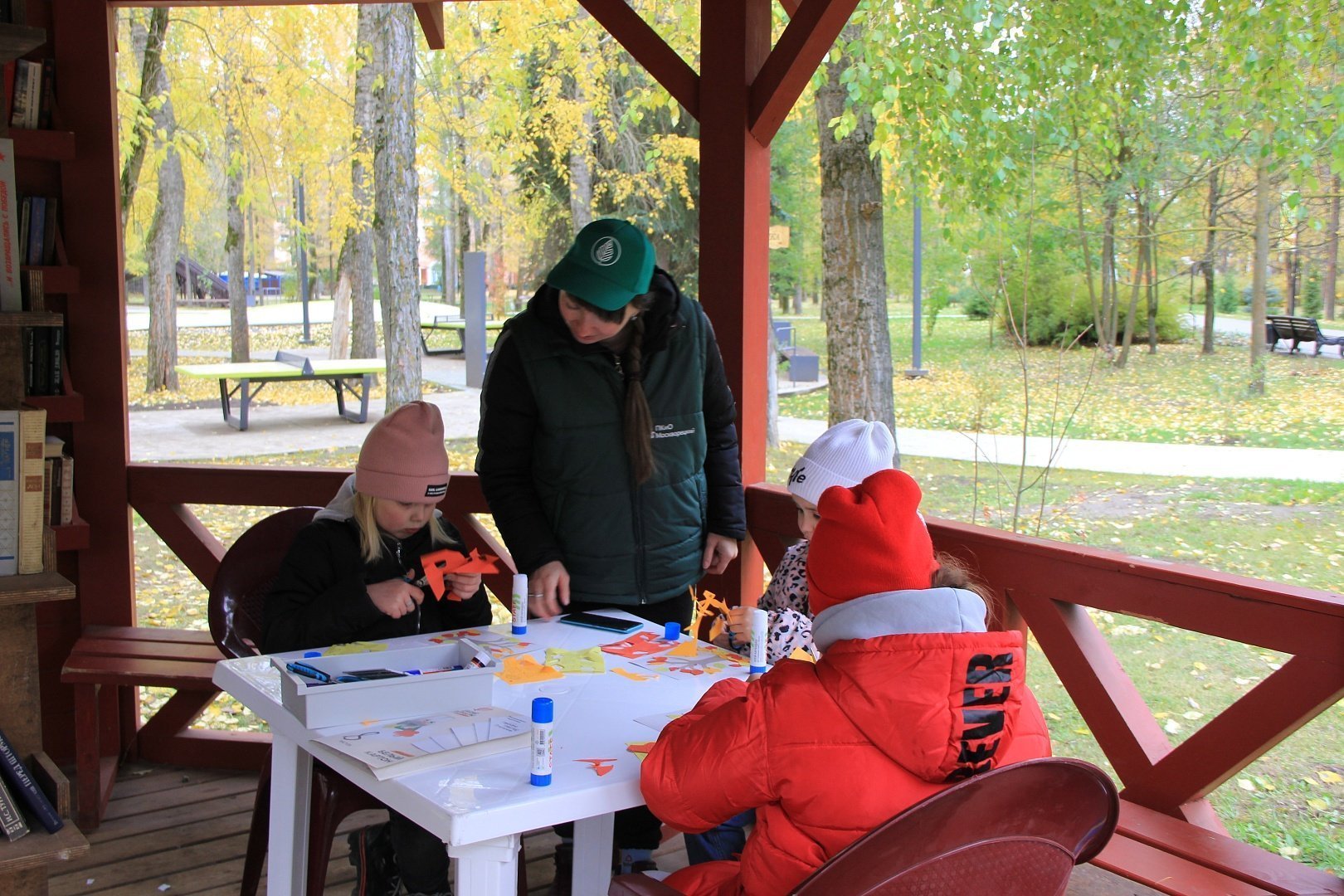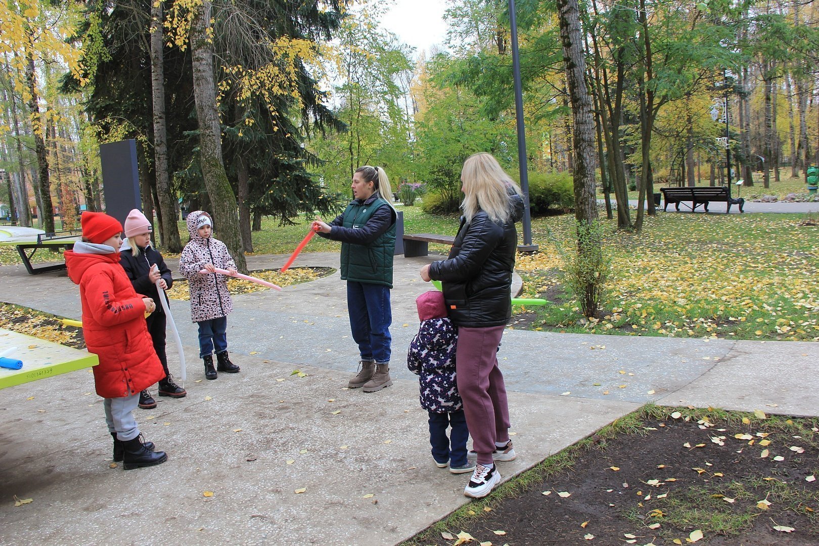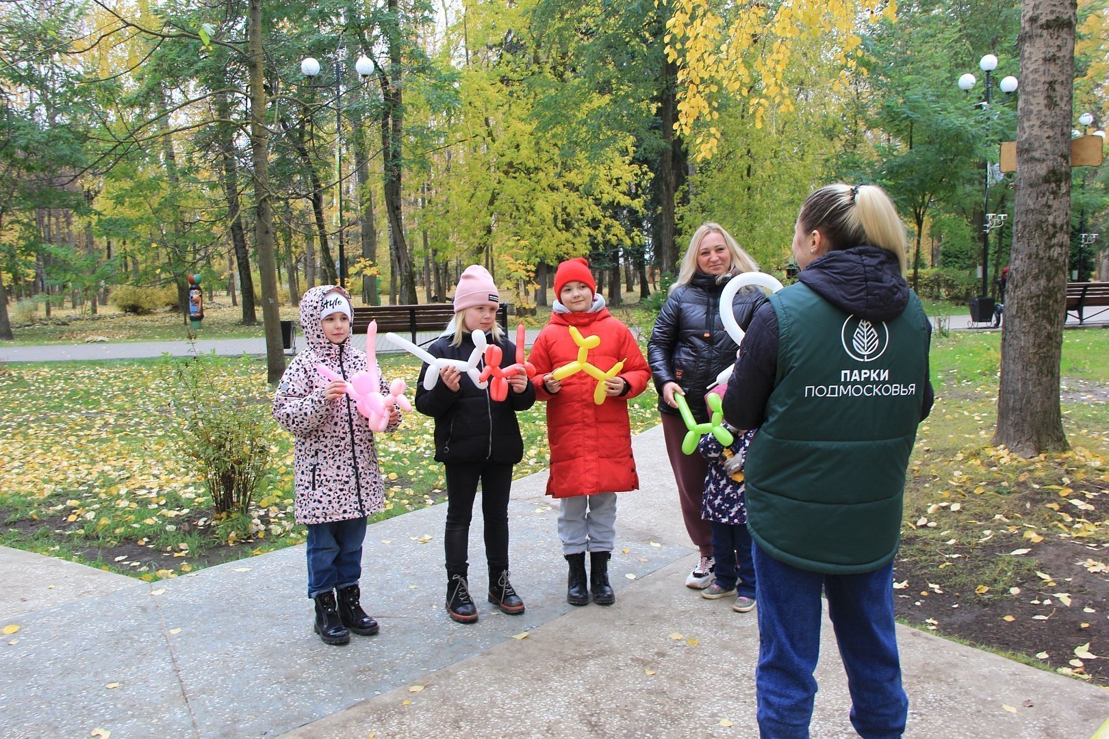 Затем участники программы продолжили создавать осенние картины, но уже не из бумаги, а картона и пластилина. Завершающим стал мастер-класс по моделированию из шариков, который называется «Твистинг». Из длинных шаров всем гостям парка удалось смастерить сабли и забавных пёсиков.