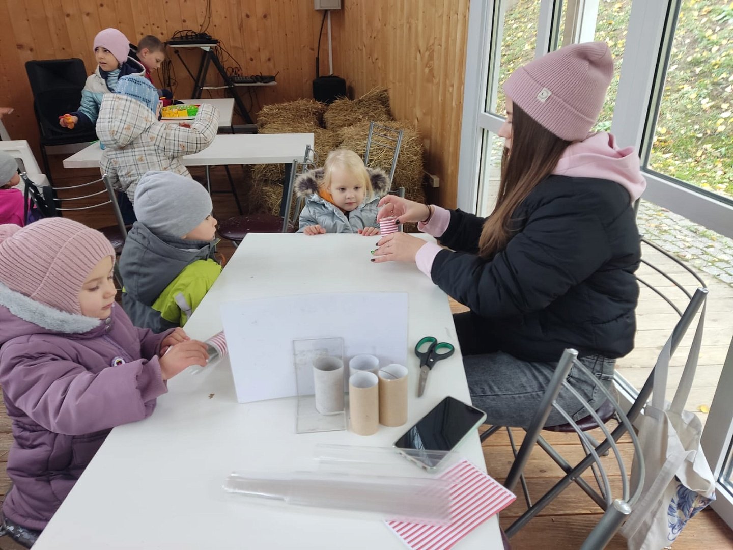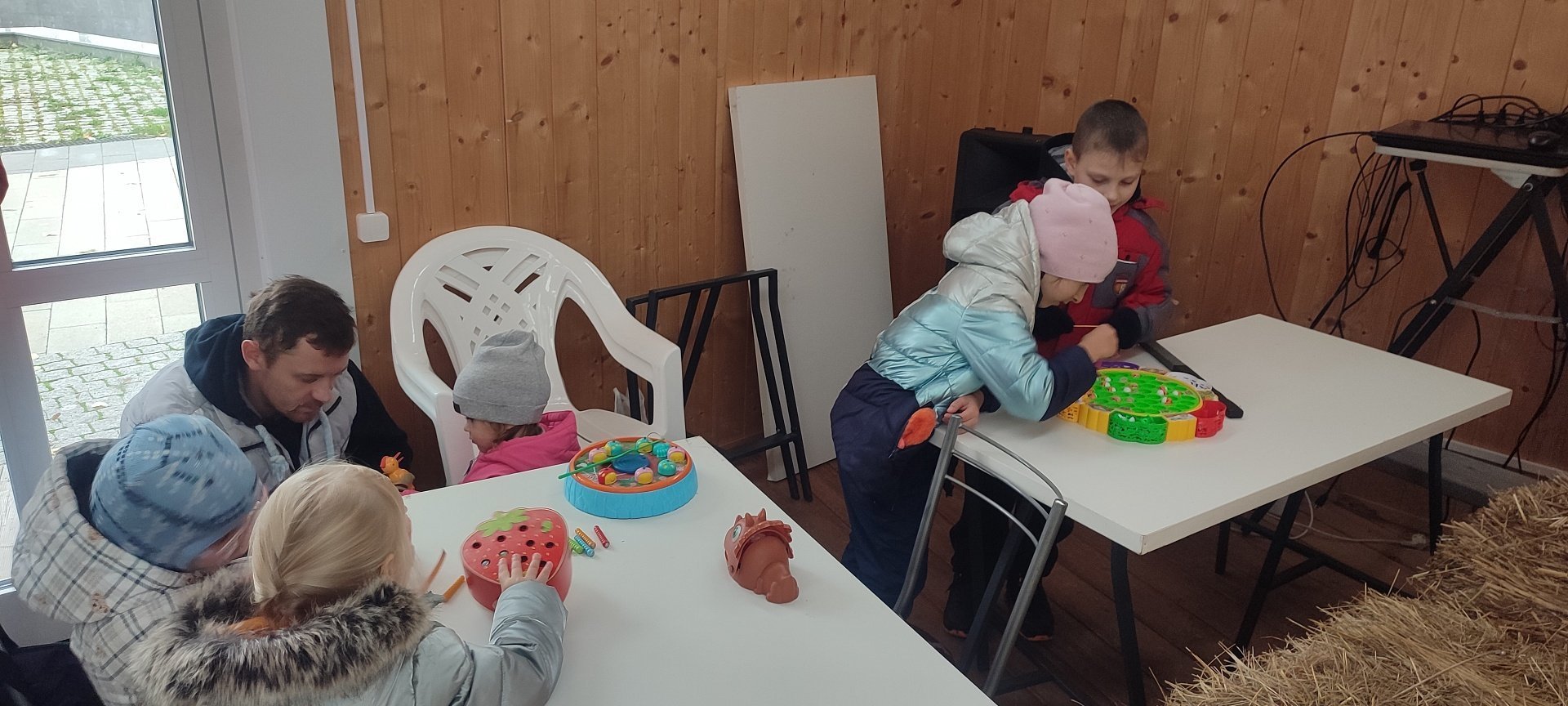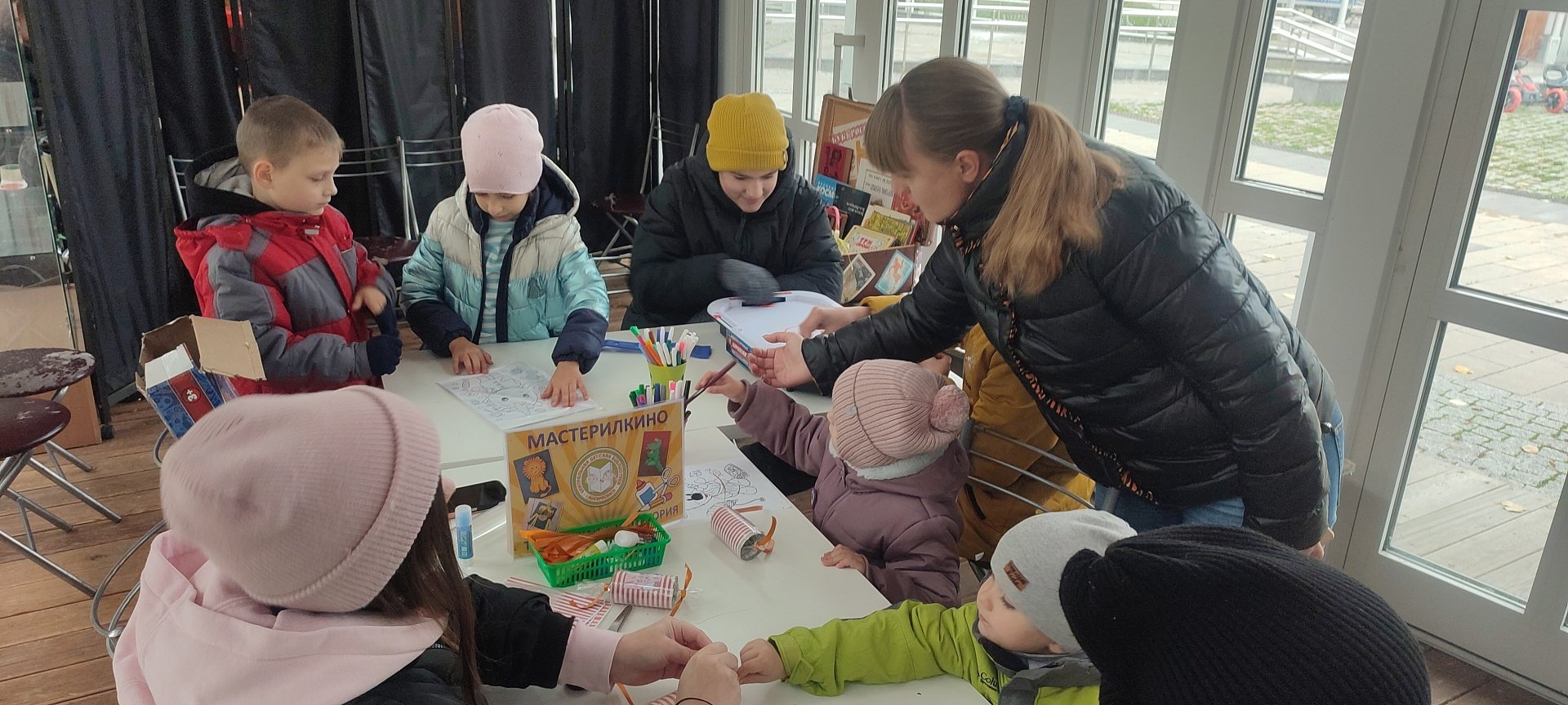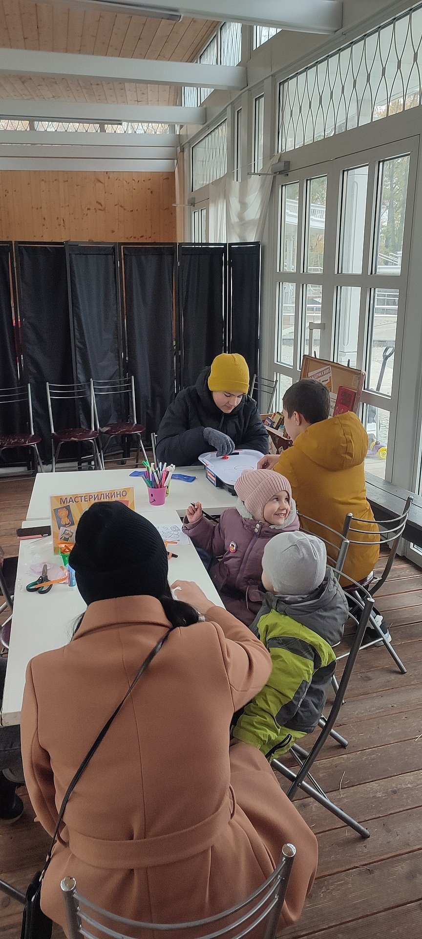 Дети с родителями играли в настольные игры, раскрашивали весёлые картинки, а также брали в подарок книги из "Читающего чемоданчика" с буккроссингом.