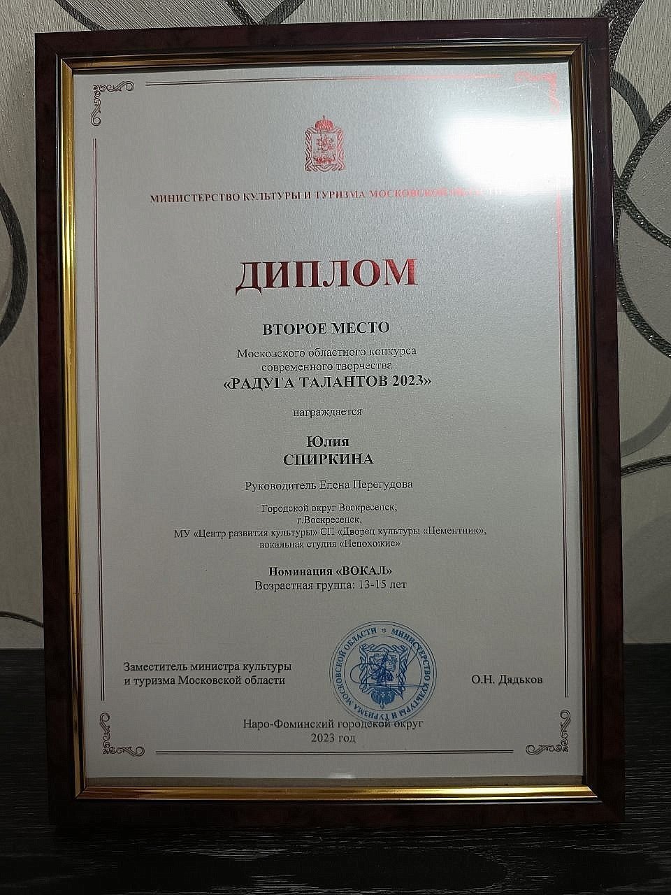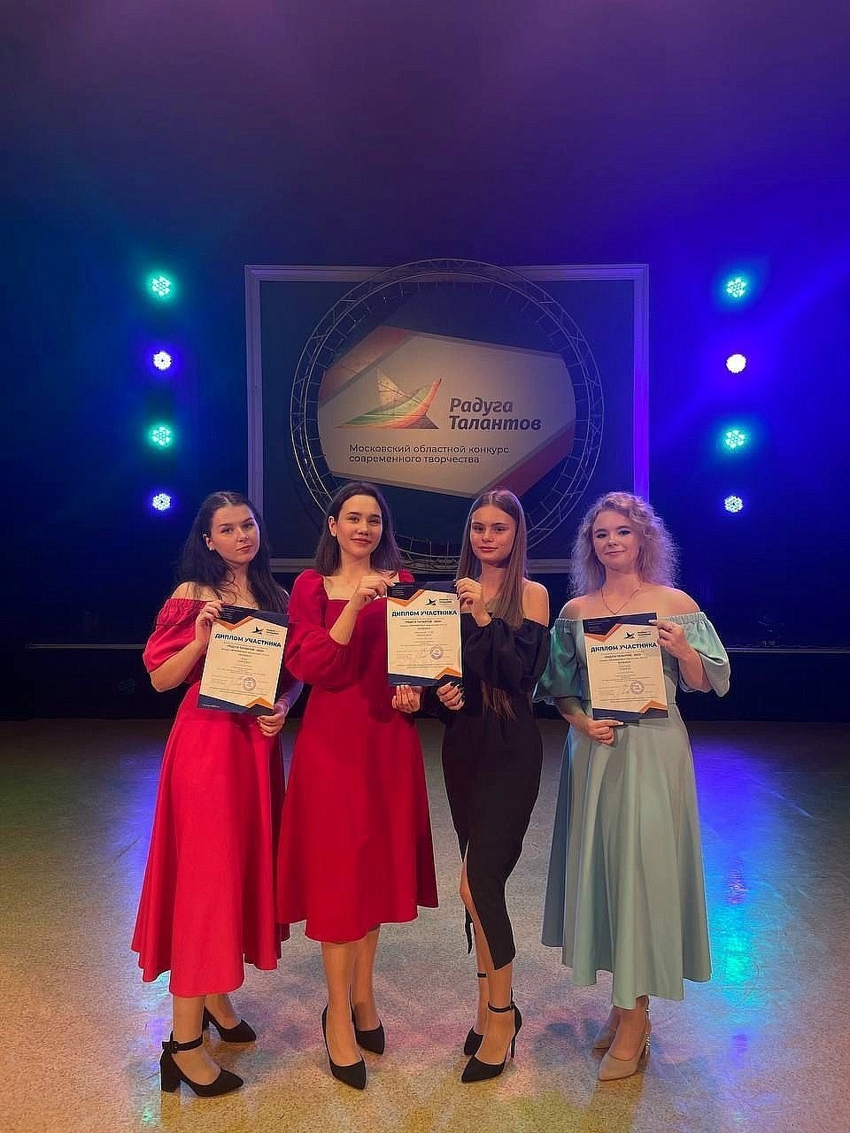 Вокальная студия «Непохожие» (руководитель Елена Перегудова) и Анастасия Горячева отмечены дипломами участников, а Юлия Спиркина получила диплом II степени XII областного конкурса современного творчества «Радуга Талантов», который состоялся в минувшие выходные в Наро-Фоминске.