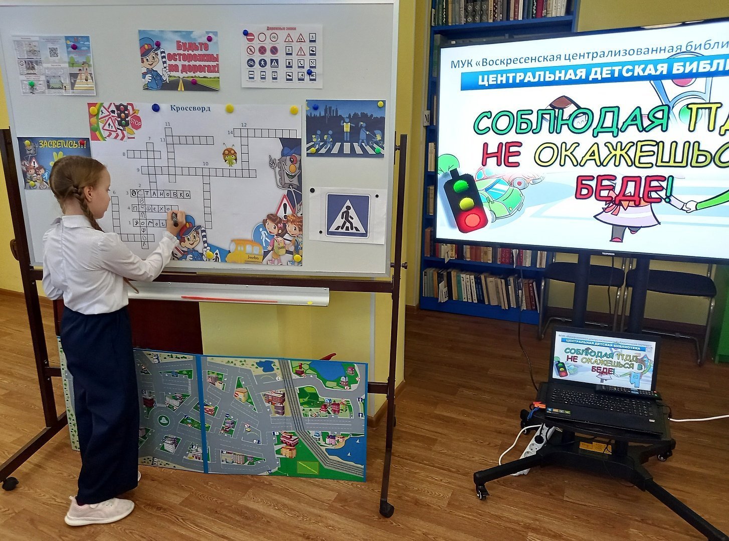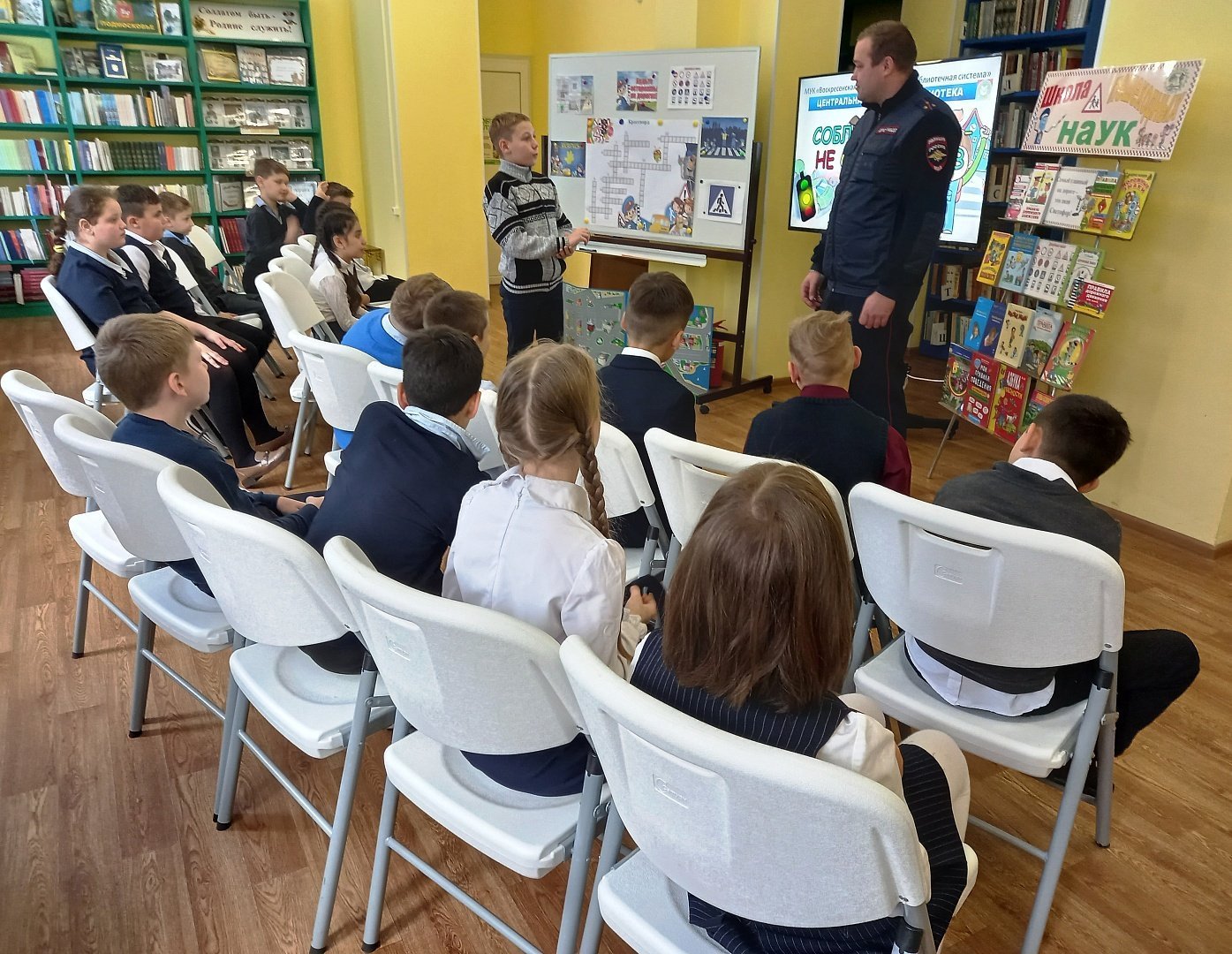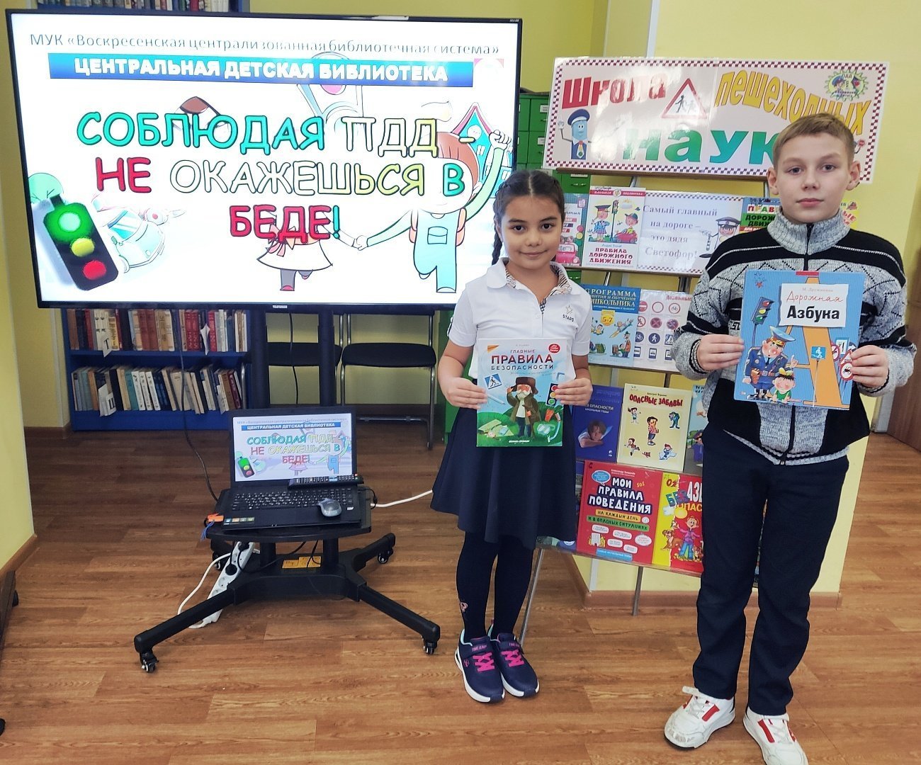В Центральной детской библиотеке для учеников начальных классов МОУ «СОШ имени Героя России лётчика-испытателя Сергея Рыбникова» была проведена познавательная игра «В стране дорожных знатоков». В Воскресенской городской библиотеке №1 для учащихся МОУ «Москворецкая гимназия» прошел урок профилактики «Азбука безопасности».