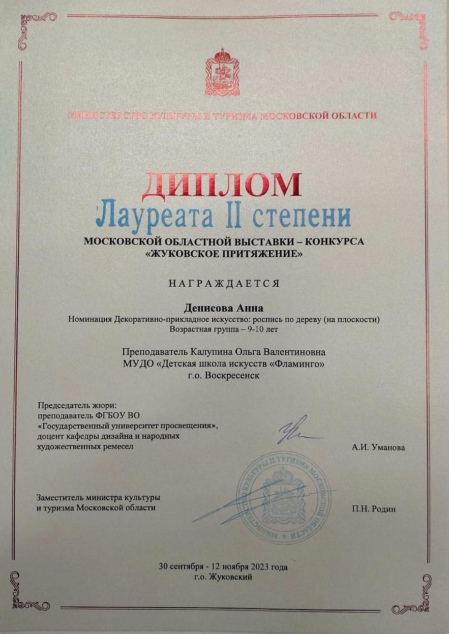Анна Денисова - лауреат II степени в номинации "Декоративно-прикладное искусство: роспись по дереву" (преподаватель Калупина О.В.);