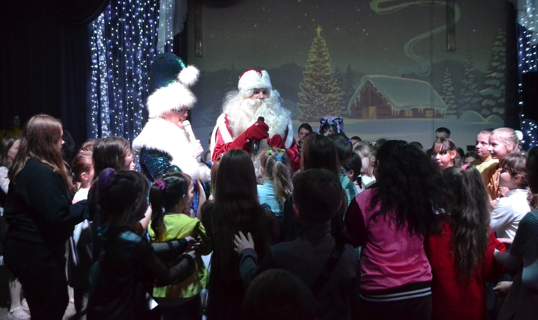 Юные жители рабочего поселка им. Цюрупы с большой радостью встретили Деда Мороза и его друзей, весело отгадывали загадки, участвовали в конкурсах, викторинах, танцах в рамках программы «Сюрпризы от Деда Мороза!».