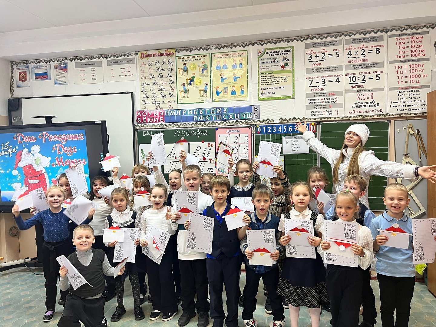 КИБО подготовил для первоклассников МОУ «Лицей 23» д. Цибино развлекательную программу «С днем рождения, Дедушка!» В гости к ученикам пришла Снегурочка и познакомила их с новогодними волшебниками разных стран. Ребята разгадывали загадки, участвовали в игре «На елку вешают игрушки», делали оригинальный конверт для писем Деду Морозу.