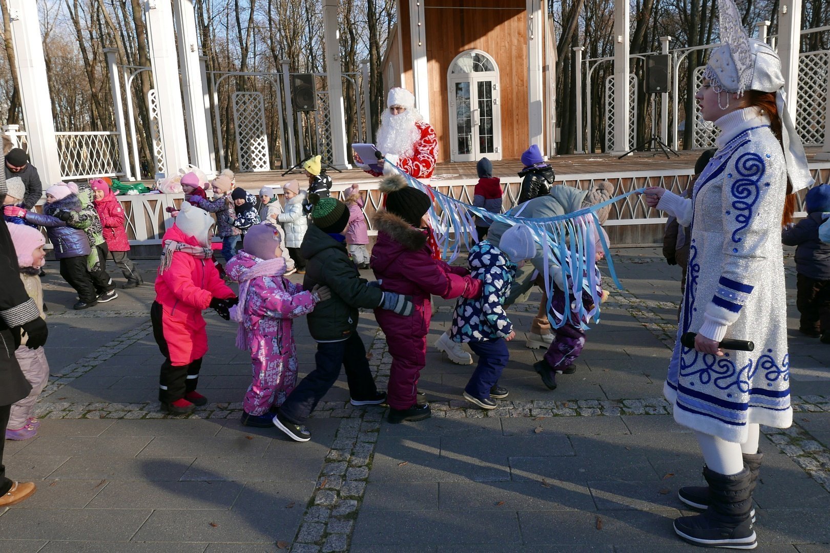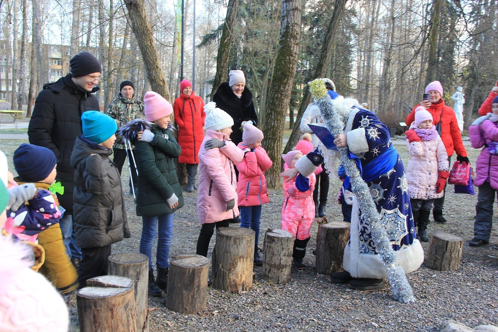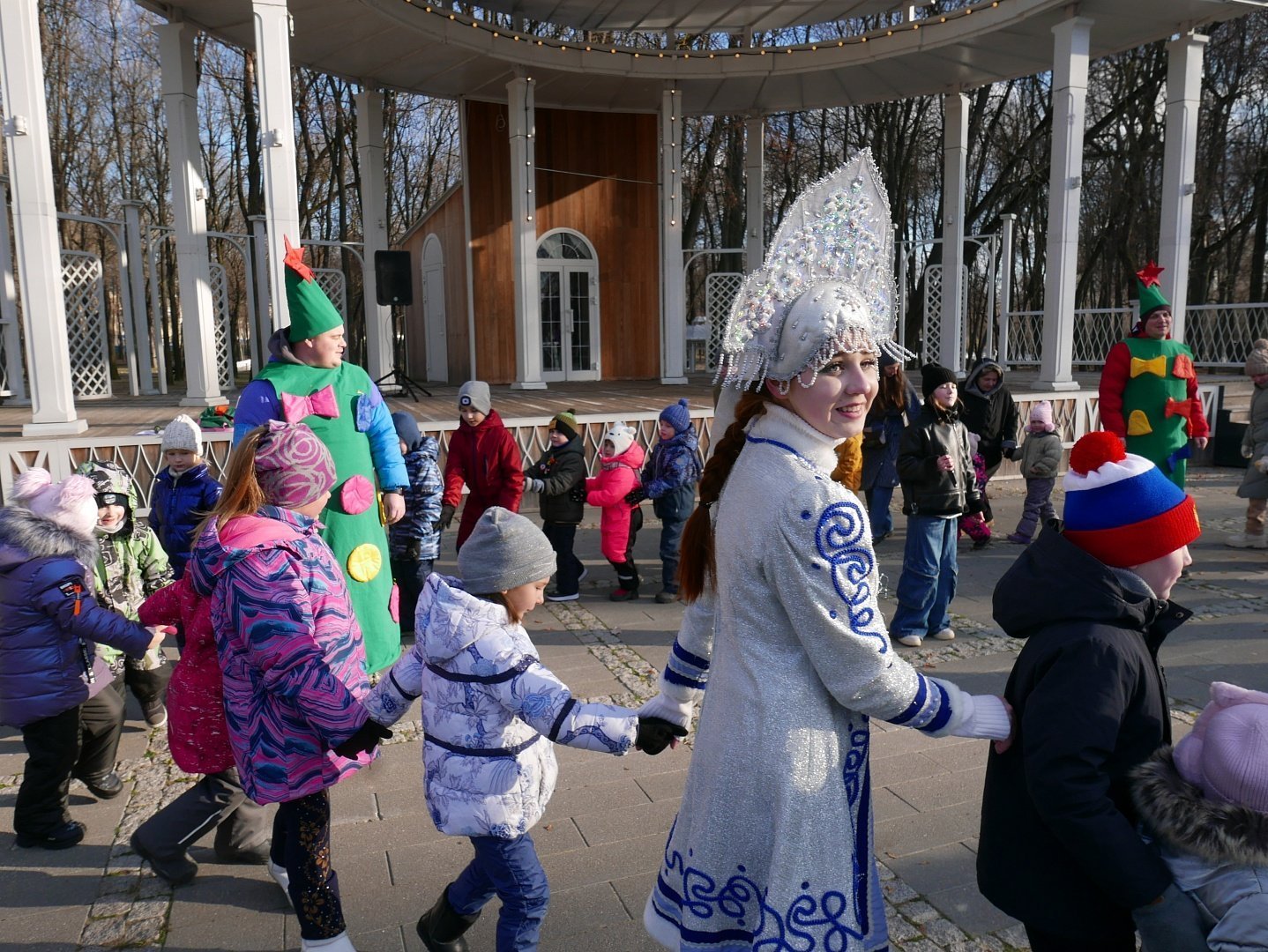 У главной сцены парка усадьбы «Кривякино» развернулось театрализованное представление, подготовленное сотрудниками ДК «Химик». Дед Мороз и Снегурочка развлекали больших и маленьких гостей парка, которые весело принимали участие в конкурсах и забавах.