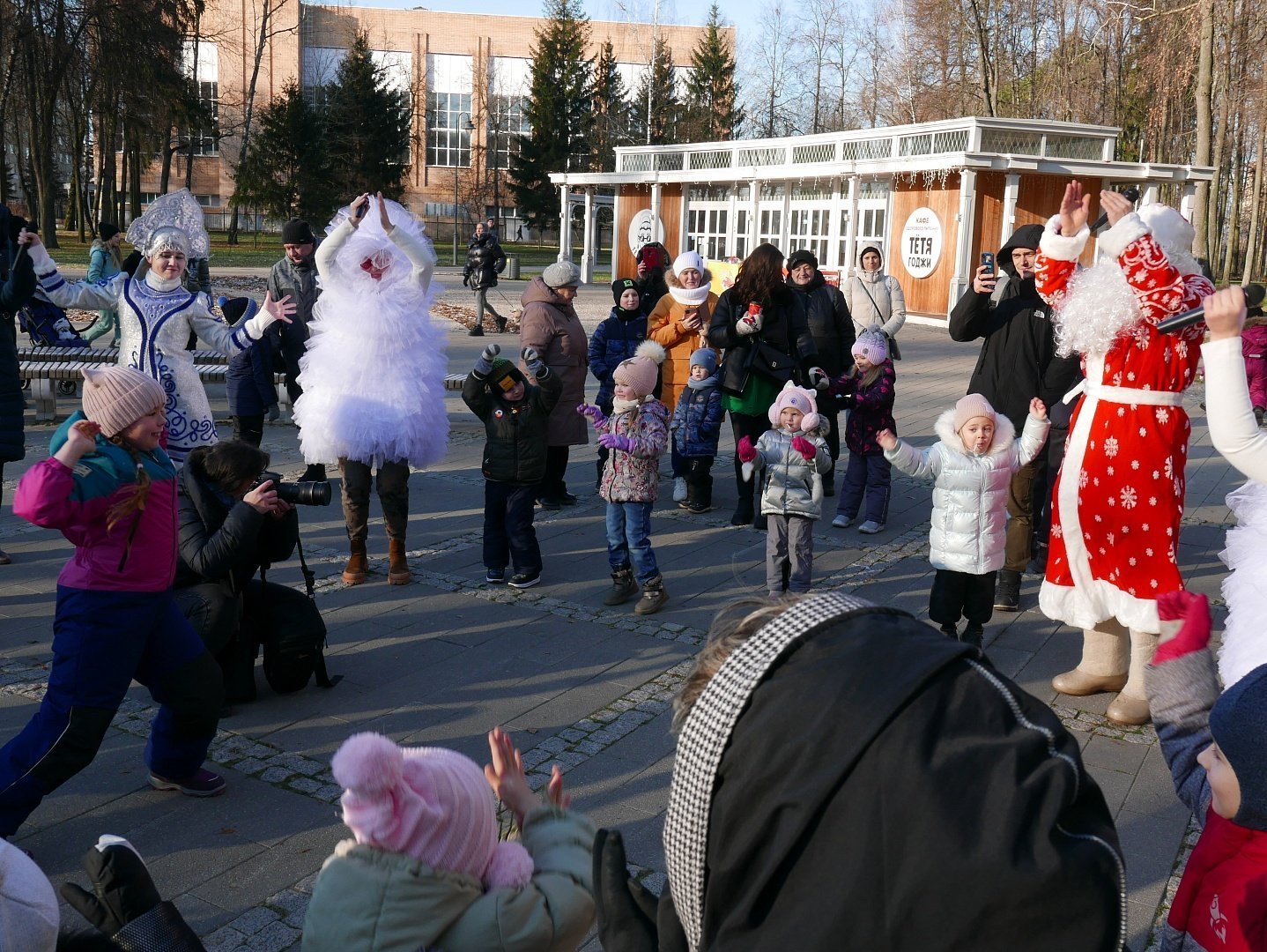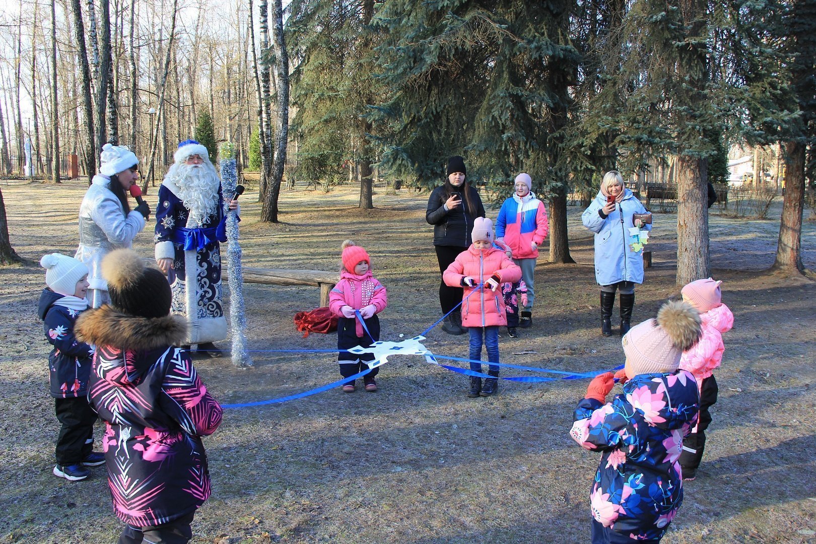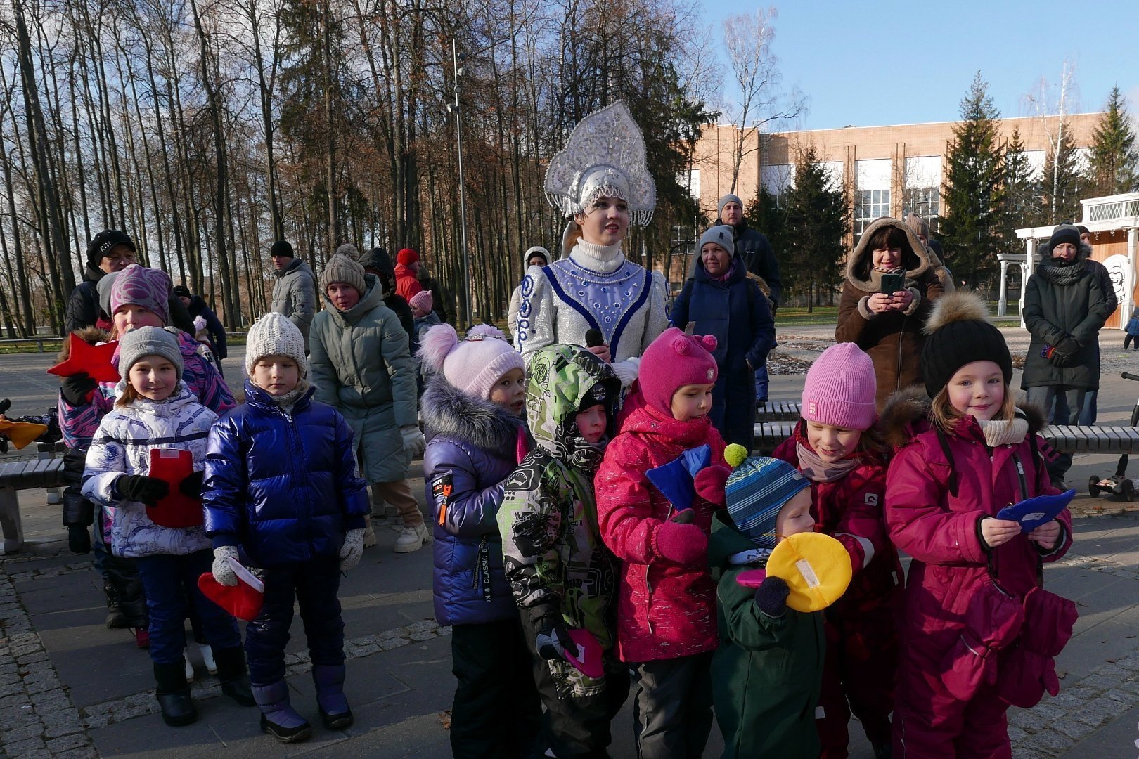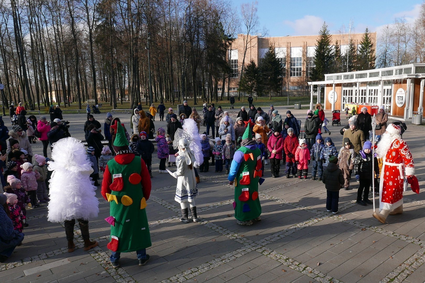 У главной сцены парка усадьбы «Кривякино» развернулось театрализованное представление, подготовленное сотрудниками ДК «Химик». Дед Мороз и Снегурочка развлекали больших и маленьких гостей парка, которые весело принимали участие в конкурсах и забавах.
