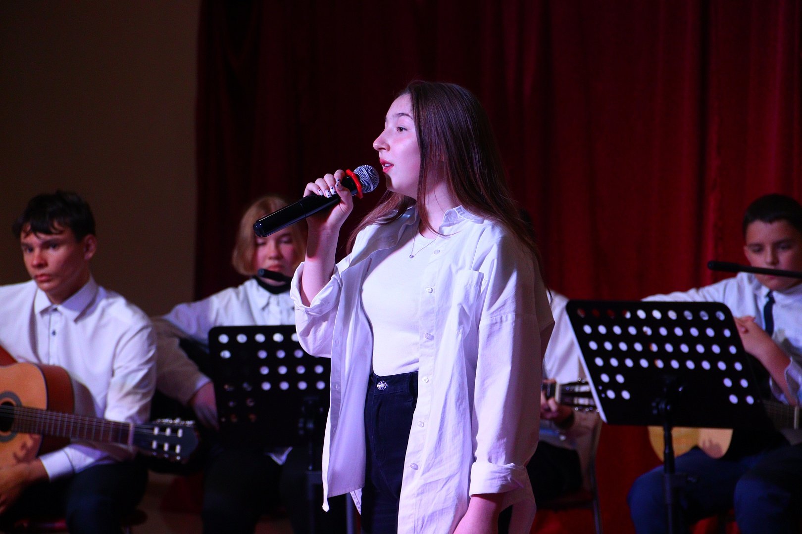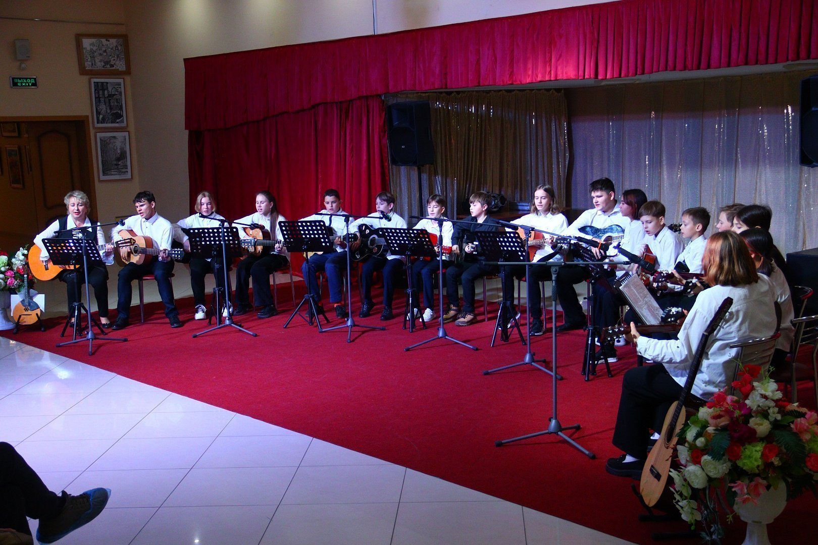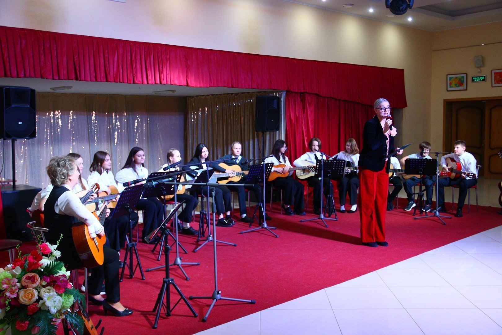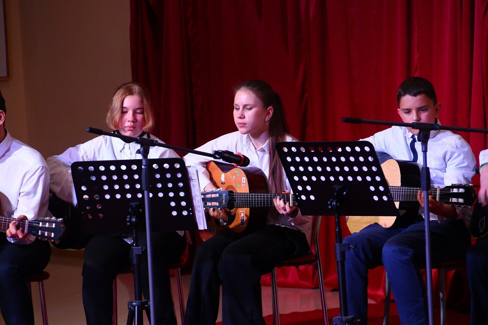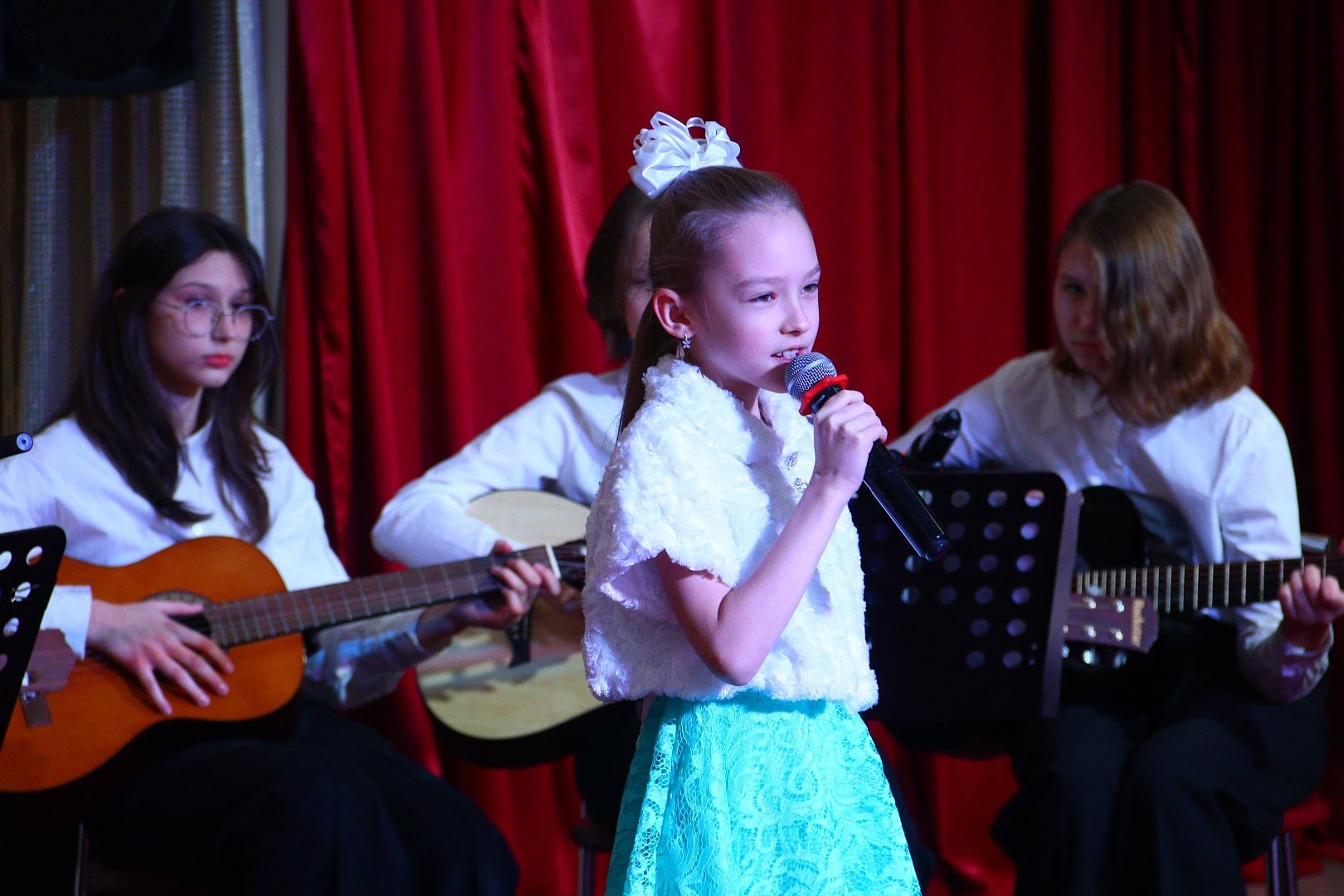 Участники праздничного концерта на протяжении всего мероприятия дарили гостям не только добрые слова и улыбки, но и специально подготовленные номера: воспитанницы студии «Кукольный театр «Самоцветы» Лиза Сафарова и Мария Череватая (руководитель Баскакова Мария Викторовна) прочитали трогательные стихи, ансамбль гитаристов вместе с руководителем студии игры на гитаре «Музыкальная лаборатория» исполнили замечательные песни.