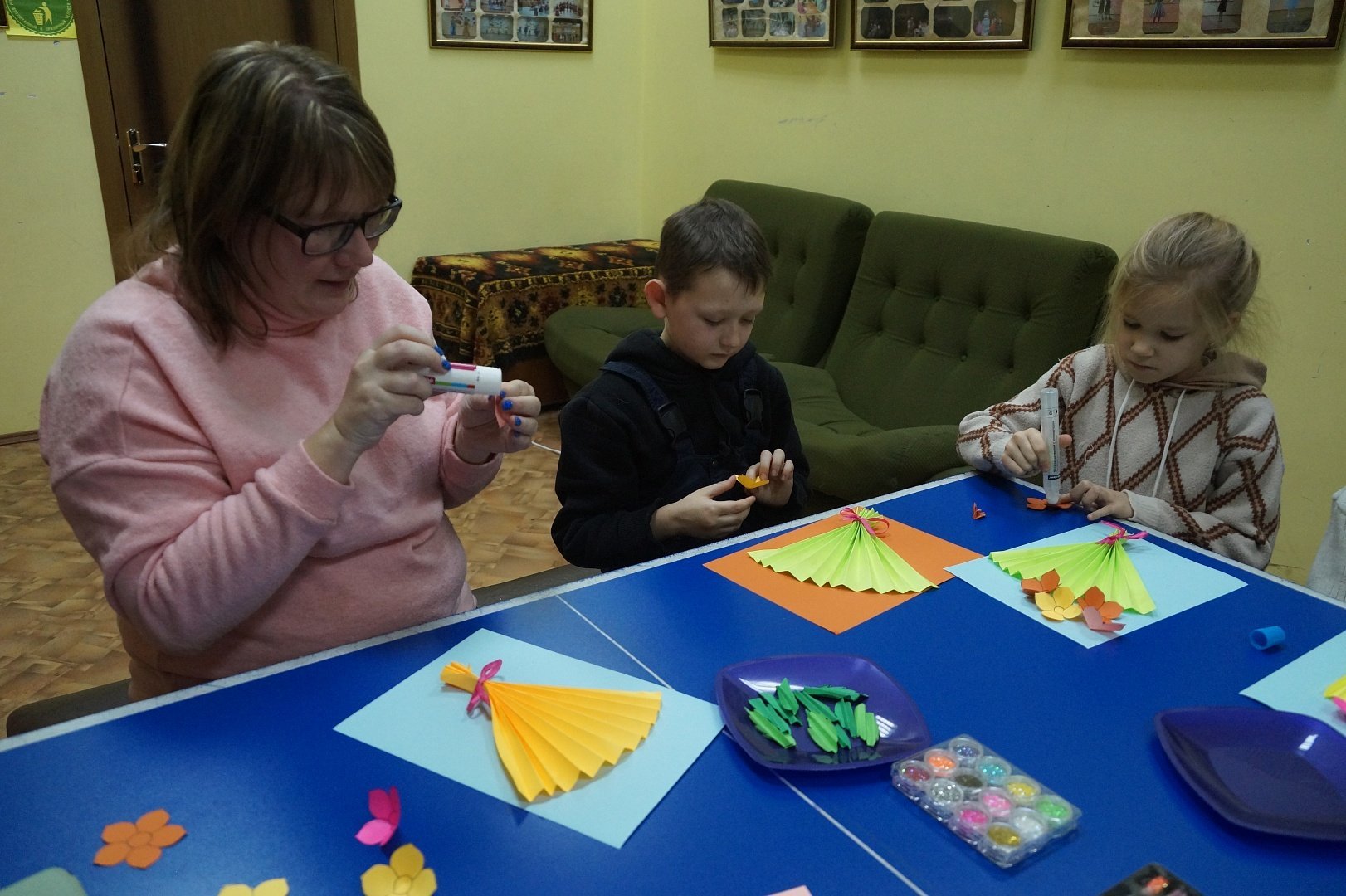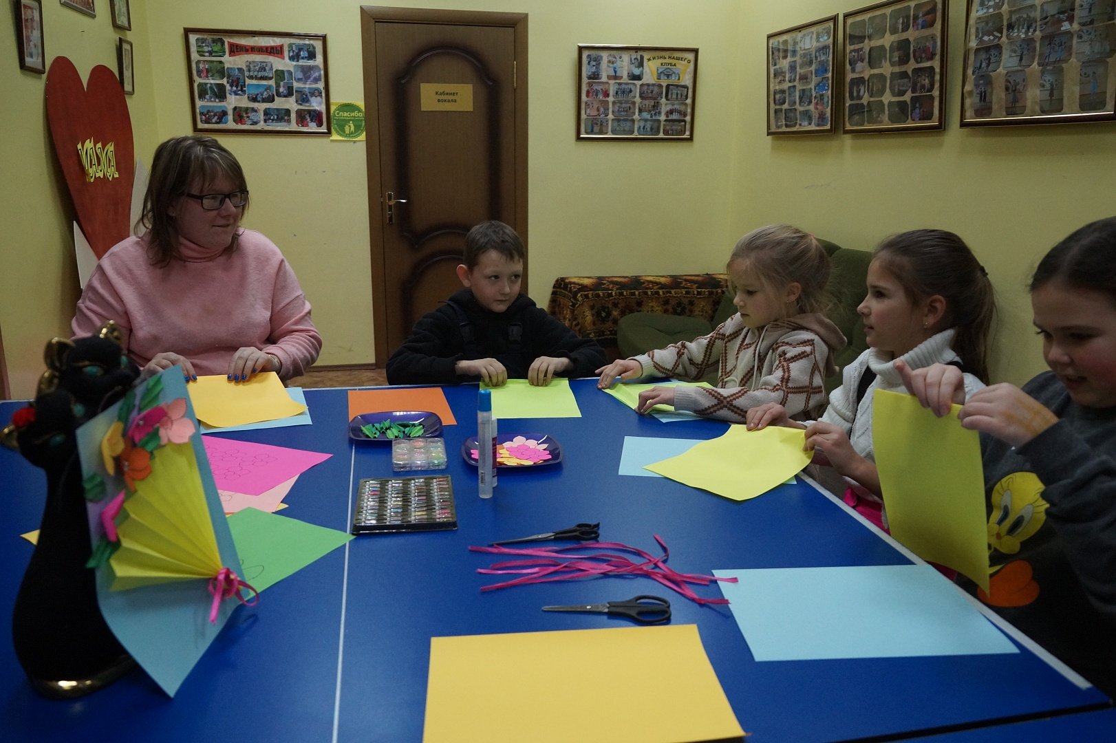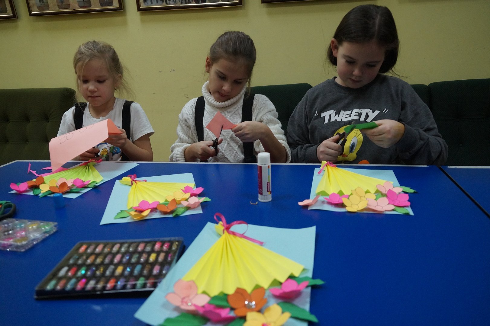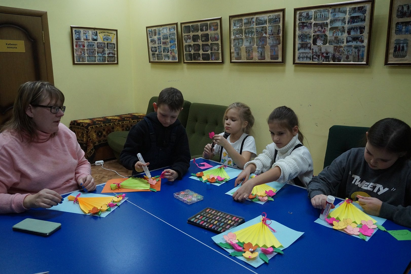 Ирина Владимировна Карандашева научила участников мастер-класса создавать своими руками объёмную праздничную открытку из картона и цветной бумаги. Техника выполнения требовала внимательности и аккуратности. Ребята вложили в неё не только мастерство и терпение, но и талант, фантазию и, конечно же, любовь к родному человеку.