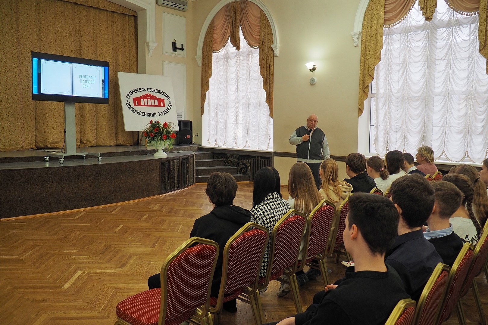 Сегодня, 28 ноября для учащихся 9-го класса школы № 2 была организована лекция об истории и сегодняшнем дне литературного объединения «Радуга» им. И.И. Лажечникова г.о. Воскресенск Московской области. Виктор Лысенков - член Союза писателей и Союза журналистов России, член творческого объединения «Воскресенский краевед» и Московского краеведческого общества, руководитель Воскресенского литературного объединения «Радуга» им. И.И. Лажечникова, заместитель председателя Московской областной организации Союза писателей России, рассказал о творческом начале человека, о том, что движет людьми, встретившими на своем жизненном пути поэтическую Музу, о чем пишут эти люди, что их волнует.