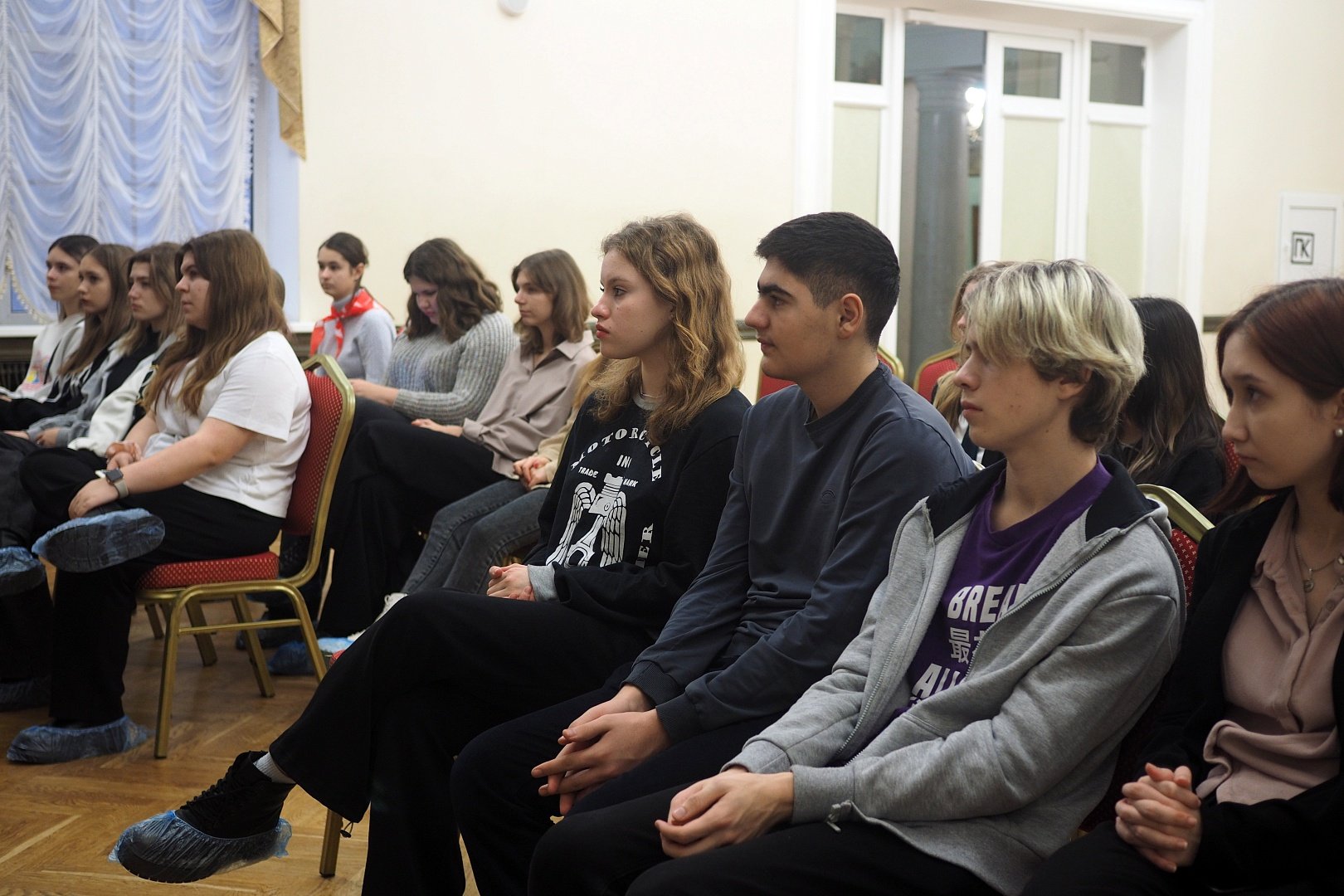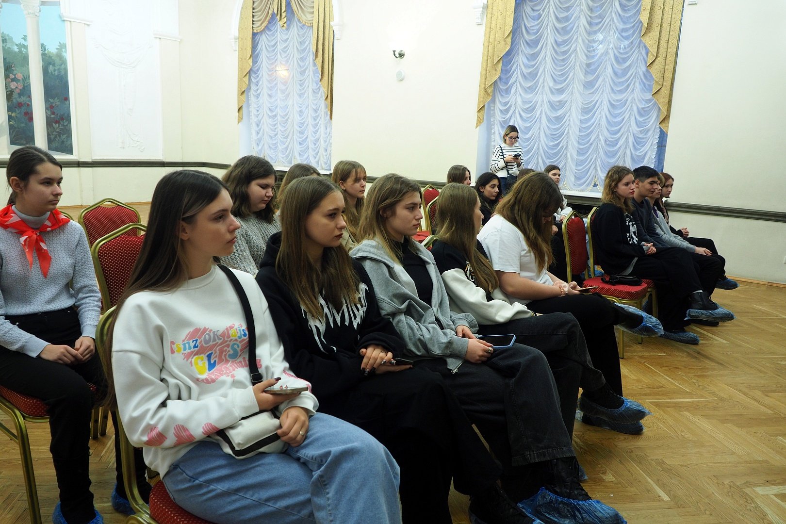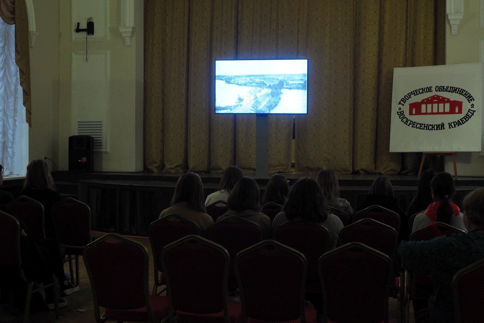 Затем ребята посмотрели документальный фильм из цикла «Очерки истории Воскресенского края» «Небесами данный свет» (режиссер С. Белоус) об истории создания объединения, о ее основателях и членах объединения, о литературной гостиной и публикациях.