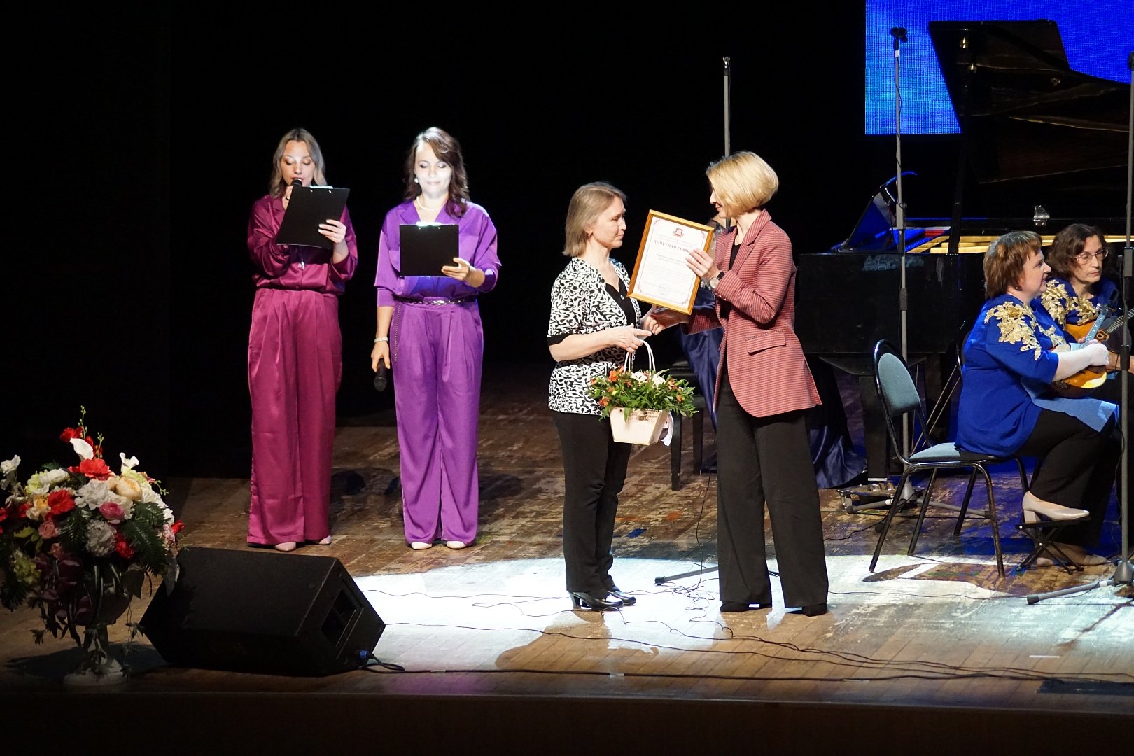 Почетные гости праздника - Заместитель главы Администрации городского округа Воскресенск Ксения Геннадьевна Архипова и начальник Управления культуры Елена Валентиновна Баклушина наградили преподавательский состав почетными грамотами и благодарностями за многолетний плодотворный труд, высокий профессионализм и большой вклад в дело эстетического воспитания подрастающего поколения.