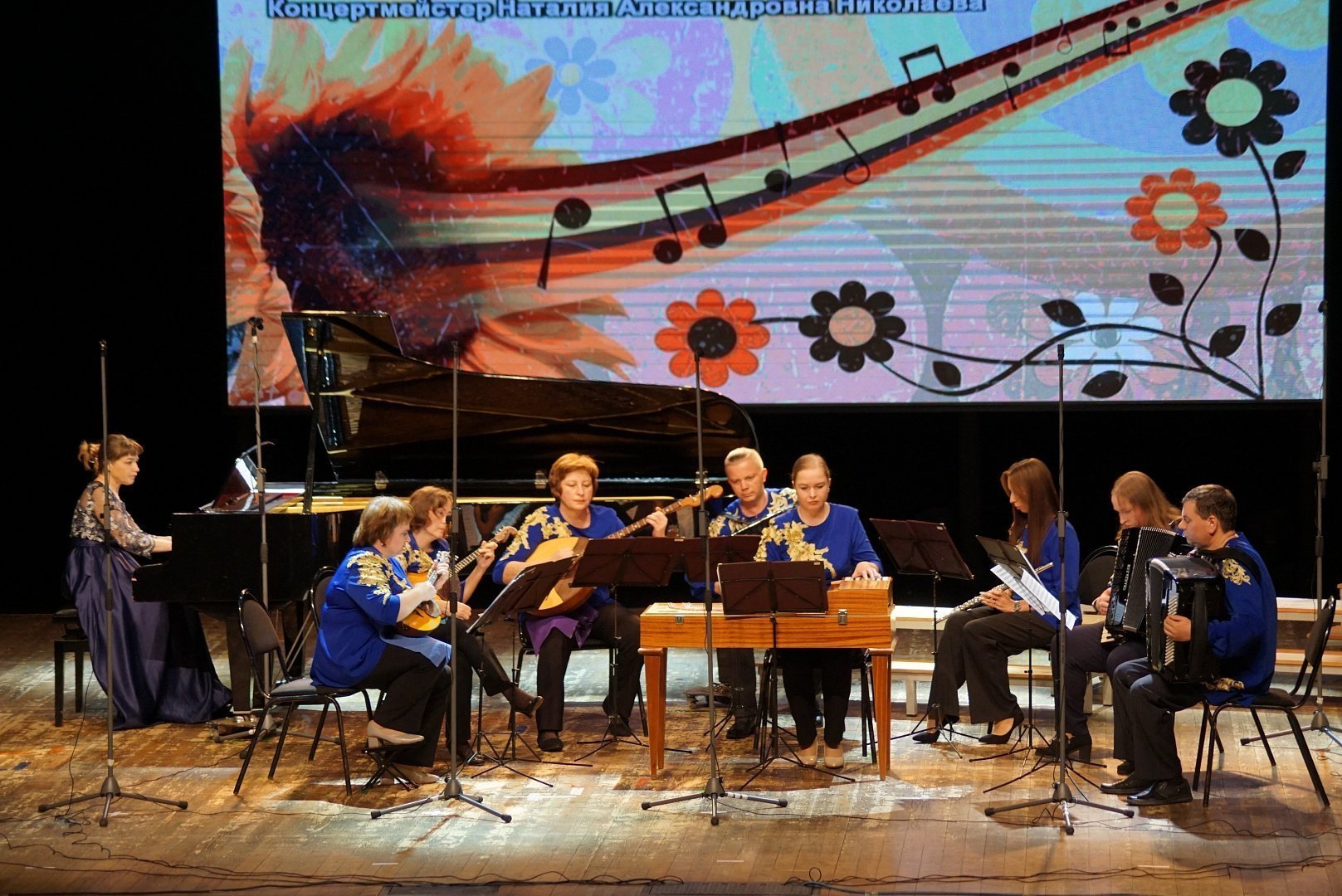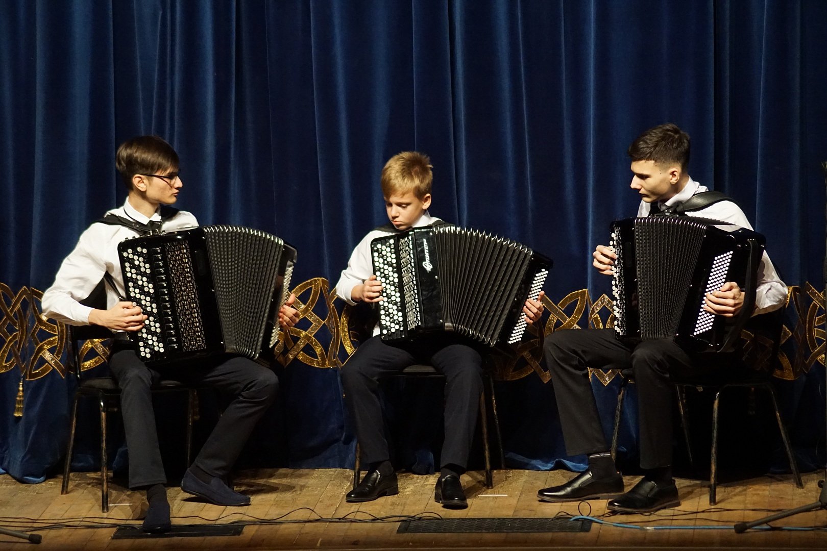 Мероприятие открылось эффектным выступлением гуслей звончатых с оркестром баянистов-аккордеонистов. На сцене выступали выпускники и воспитанники коллективов школы: фольклорный ансамбль «Ирей», коллектив эстрадно-спортивного танца «Эврика», духовой оркестр и трио баянистов.