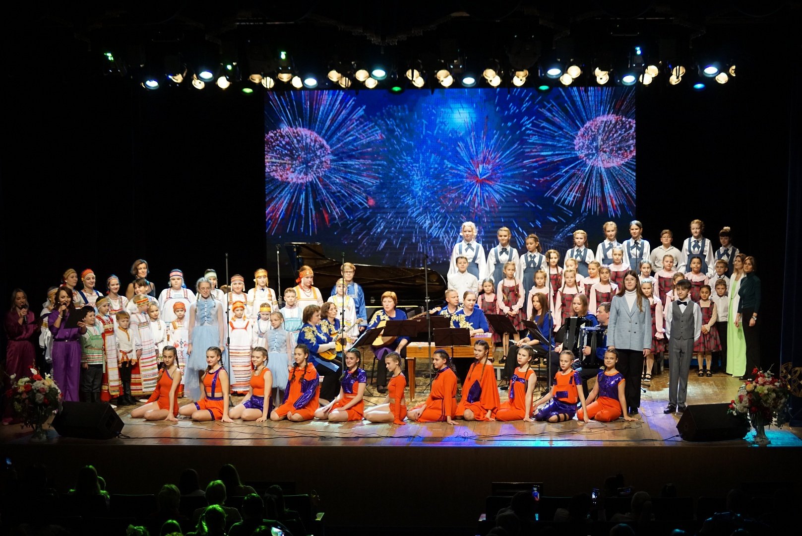 Завершающим торжественным аккордом стала песня в исполнении сводного хора старших и младших классов и ансамбля русских народных инструментов «Импульс».