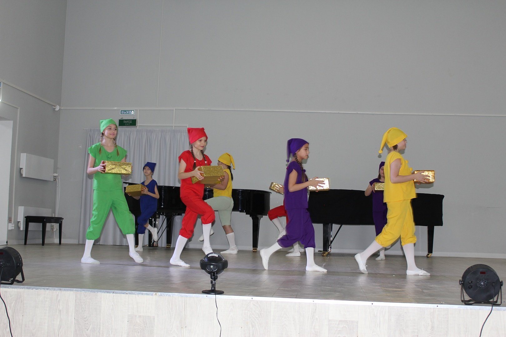 Яркими выступлениями запомнились юные солисты - скрипачи, гитаристы, домристы, пианисты, вокалисты, ансамбль эстрадно-спортивного танца «Горошинки», ансамбль скрипачей младших классов «Виваче», вокальный ансамбль «Иволга», вокальная студия «Звонкие голоса», хор младших классов и театральный коллектив «Театралы».