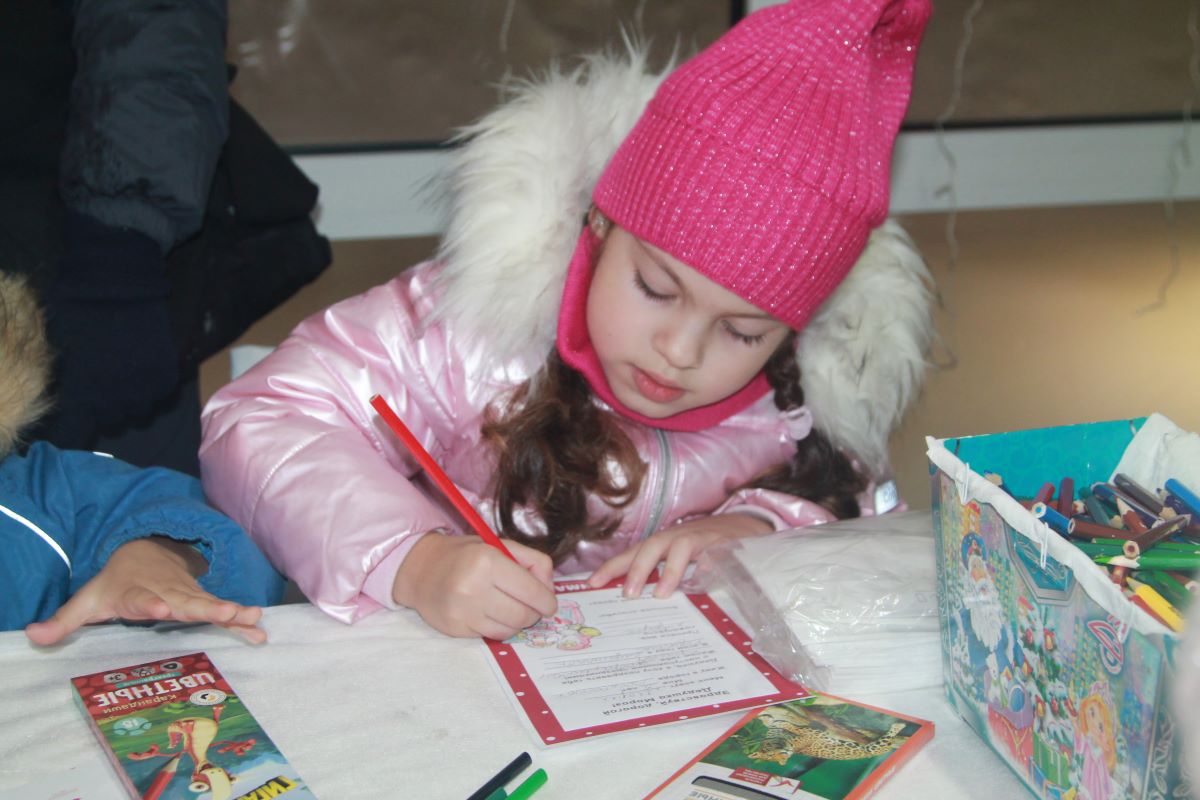 В павильоне на фонтанной площади толпился народ – здесь теперь находится резиденция Деда Мороза, которая начала работать уже в первый день зимы. Дети мастерили подарки, писали письма со своими желаниями и отправляли их в почтовый ящик. Он прикреплен с внешней стороны павильона. Каждый ребенок может опустить туда свое письмо в любое время. Не упустите свой шанс написать Дедушке!