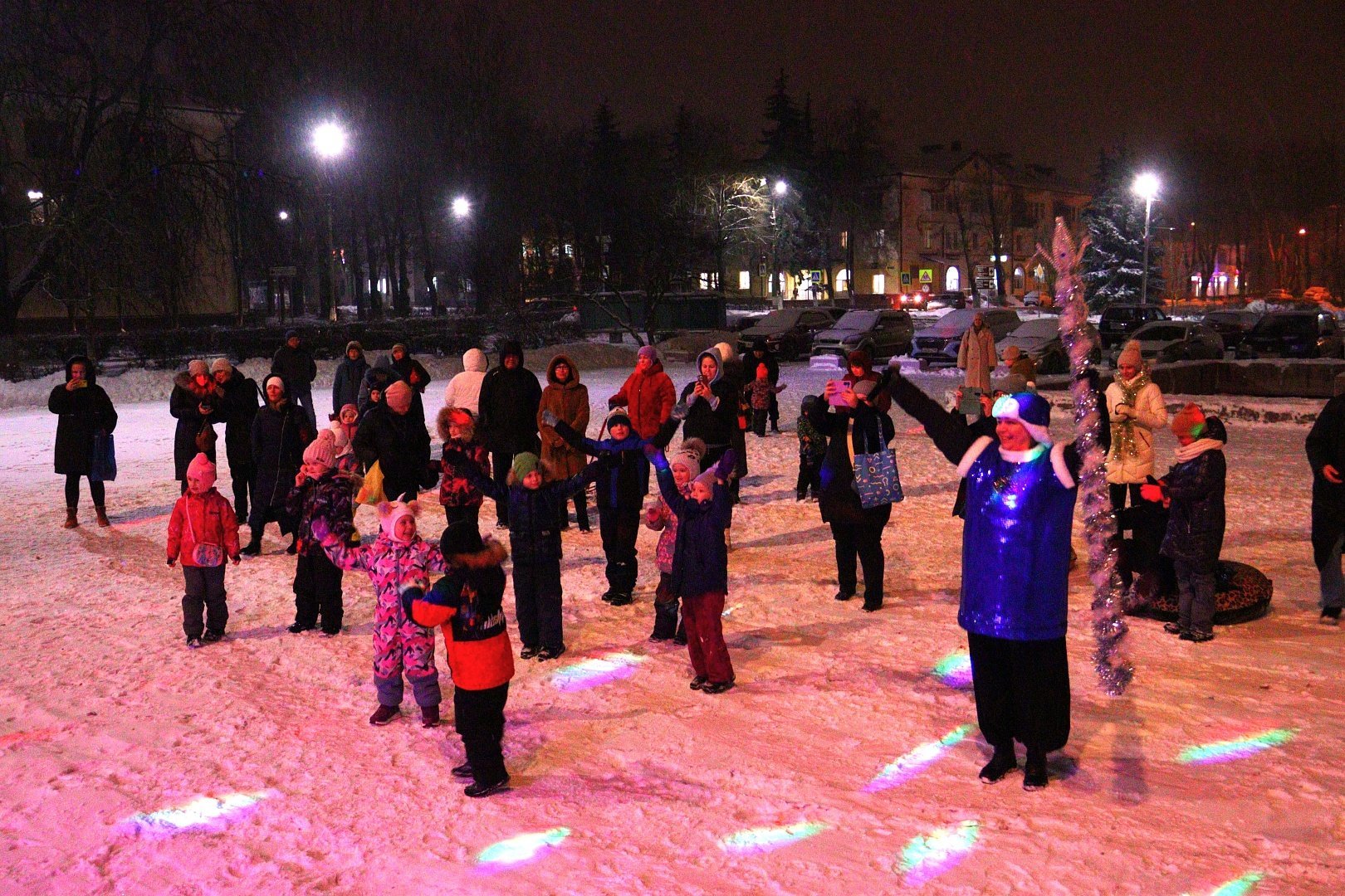 Помощник Деда Мороза узнавал у всех собравшихся всё ли готово к встрече зимы и новогодних праздников. Вместе с ребятами танцевали, играли, водили хороводы. А выступления солисток студии академического вокала «PRIMA» (руководитель Татьяна Родина) Екатерины Кондратьевой и Анастасии Кузевой украсили программу. В завершение были произнесены волшебные слова и произошло включение праздничной иллюминации и зажжение огней на новогодней елочке.