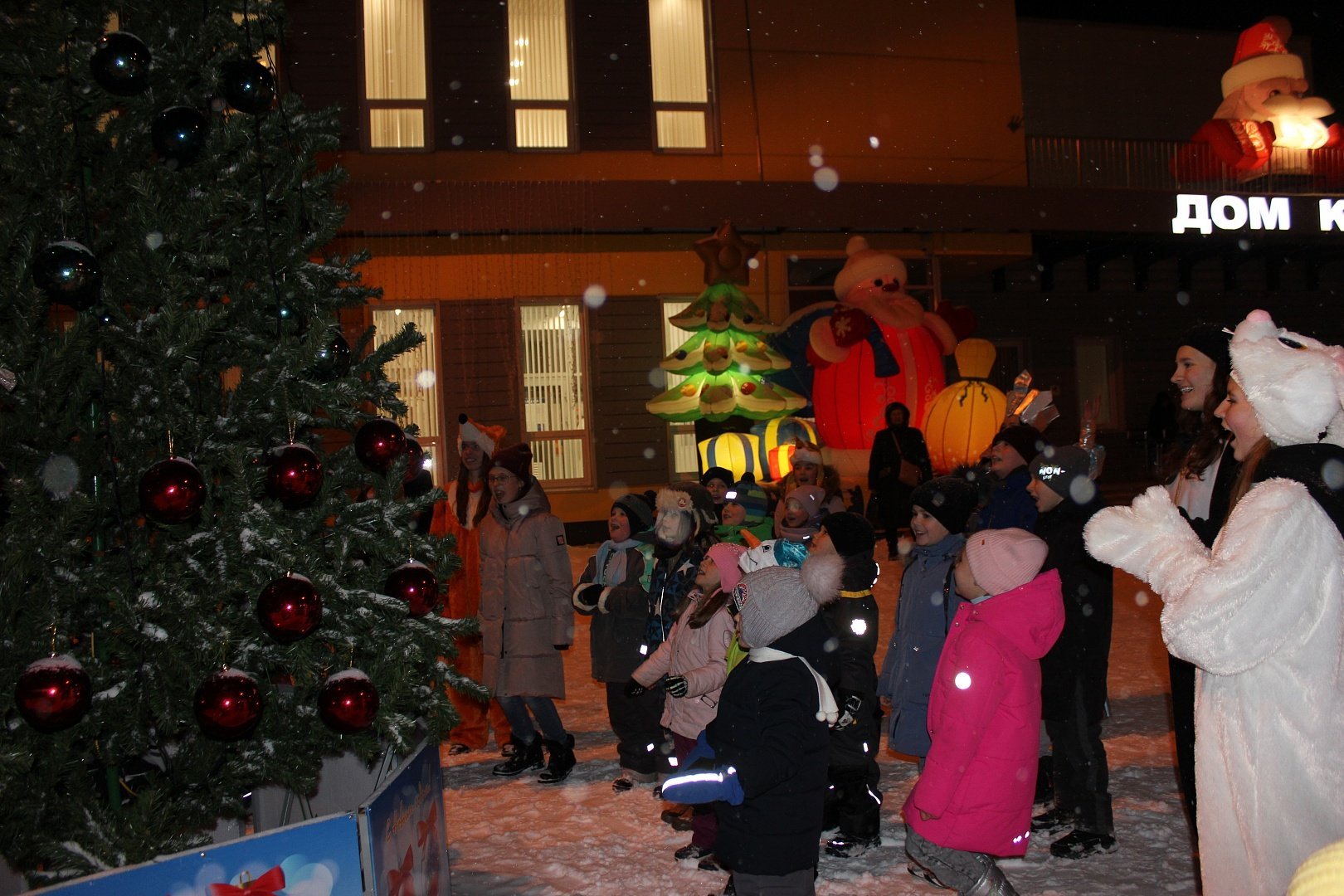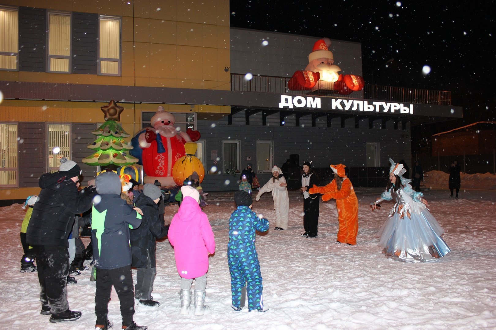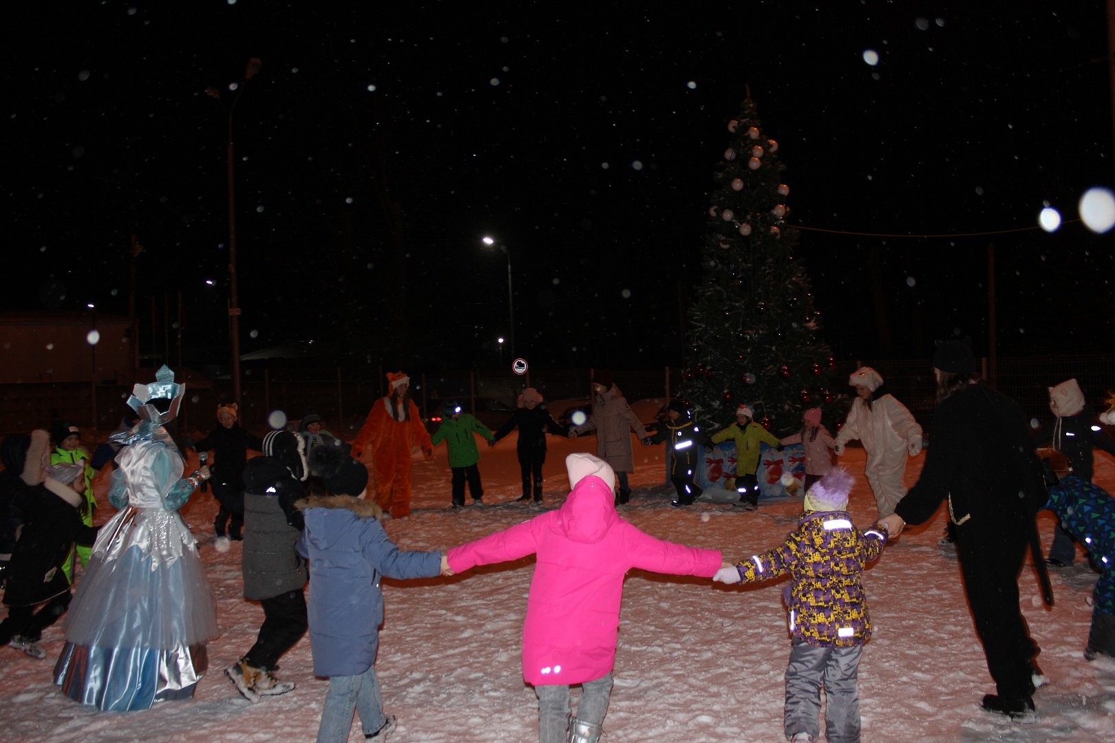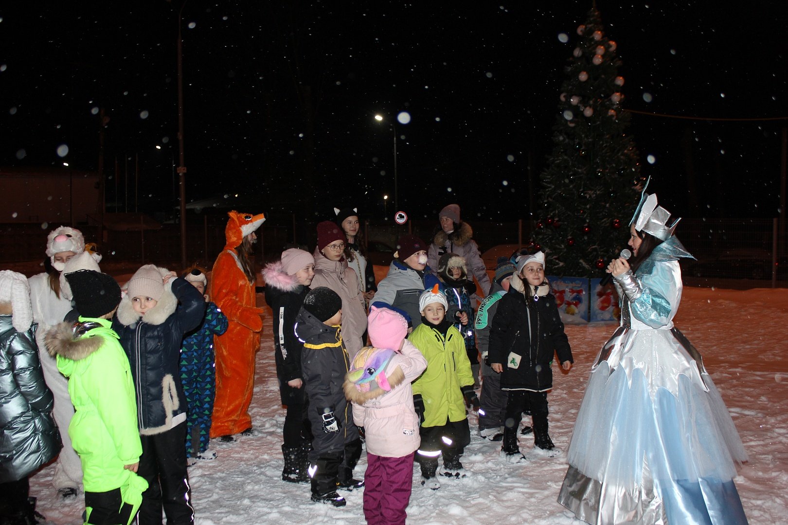 Разделившись на две команды, гости праздника активно участвовали в конкурсах, отгадывали загадки, викторины, водили хороводы и задорно танцевали. Под бурные аплодисменты торжественно зажглась новогодняя иллюминация и праздничная елка! Мероприятие прошло весело и интересно. Каждый ребенок унёс с собой хорошее настроение и сладкий приз.