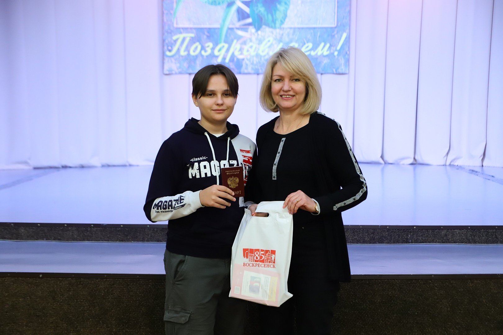 В этот день подростков с получением главного документа гражданина Российской Федерации поздравила Заместитель главы Администрации городского округа Воскресенск Елена Овсянкина. Елена Владимировна вручила ребятам паспорта, именные поздравления Губернатора Московской области Андрея Воробьева и памятные подарки.