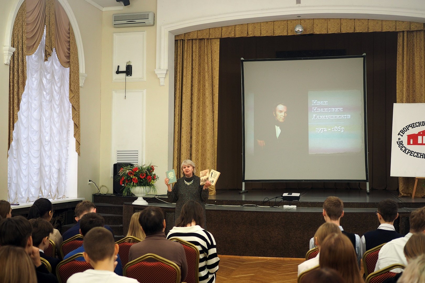 4 и 5 декабря состоялась краеведческая лекция «Иван Лажечников. Тепло «Ледяного дома» для учащихся средних и старших классов МОУ «Лицей имени Героя Советского Союза Стрельцова П. В.» член творческого объединения «Воскресенский краевед», заведующая отделом краеведения Центральной библиотеки Елена Юрова и методист Дворца культуры «Химик» Татьяна Чубарева рассказали ребятам о жизни и начале творческой деятельности великого русского писателя Ивана Лажечникова, чей писательский путь начинался в усадьбе Кривякино. Лекция сопровождалась фото и видеопрезентацией по данной теме.
