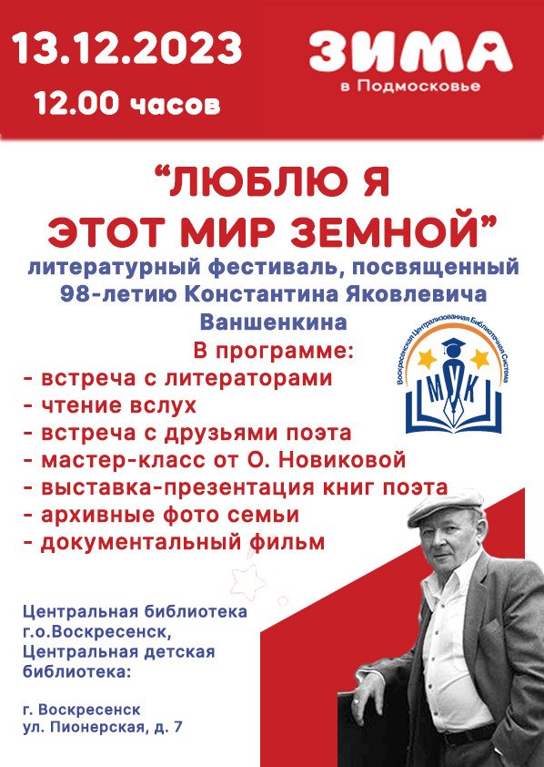 В программу войдут встреча с известными литераторами, чтение вслух стихотворений Константина Яковлевича, выставка-презентация книг поэта, где каждый сможет окунуться в мир его поэзии и открыть для себя новые грани его таланта.