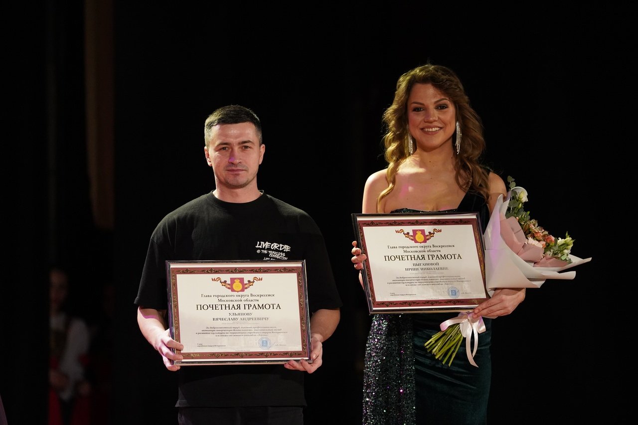 Теплые слова поздравления с юбилеем в адрес коллектива прозвучали от начальника Управления культуры Администрации городского округа Воскресенск Елены Баклушиной. Она поздравила коллектив и вручила Почетные грамоты Главы городского округа Воскресенск Московской области «За добросовестный труд, высокий профессионализм, активную творческую деятельность, значительный вклад в развитие культуры на территории городского округа Воскресенск и в связи с 10-летием ансамбля «Злато»» руководителю коллектива Вячеславу Ульянову и балетмейстеру I категории Ирине Цыгановой, а также Благодарность Совета депутатов городского округа Воскресенск Московской области «За высокий профессионализм коллектива, активную творческую деятельность, значительный вклад в развитие культуры на территории городского округа Воскресенск и в связи с 10-летием коллектива».