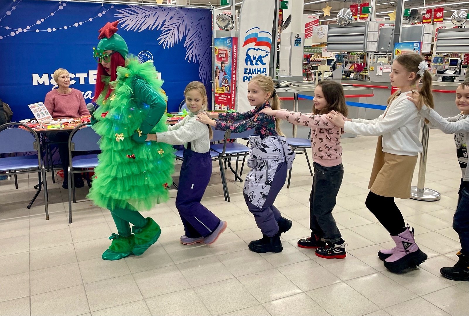 Сотрудники ДК п. Виноградово приняли участие в ежегодной новогодней акции «МастЕРская Деда Мороза» и провели игровую программу для детей «Нам праздник веселый зима принесла» в торговом центре «Магнит» (мкр. Новлянск). Мероприятие организовали члены и сторонники местного отделения партии «Единая Россия» совместно с представителями МГЕР и волонтерами.