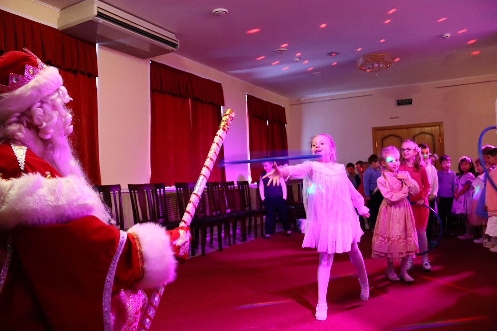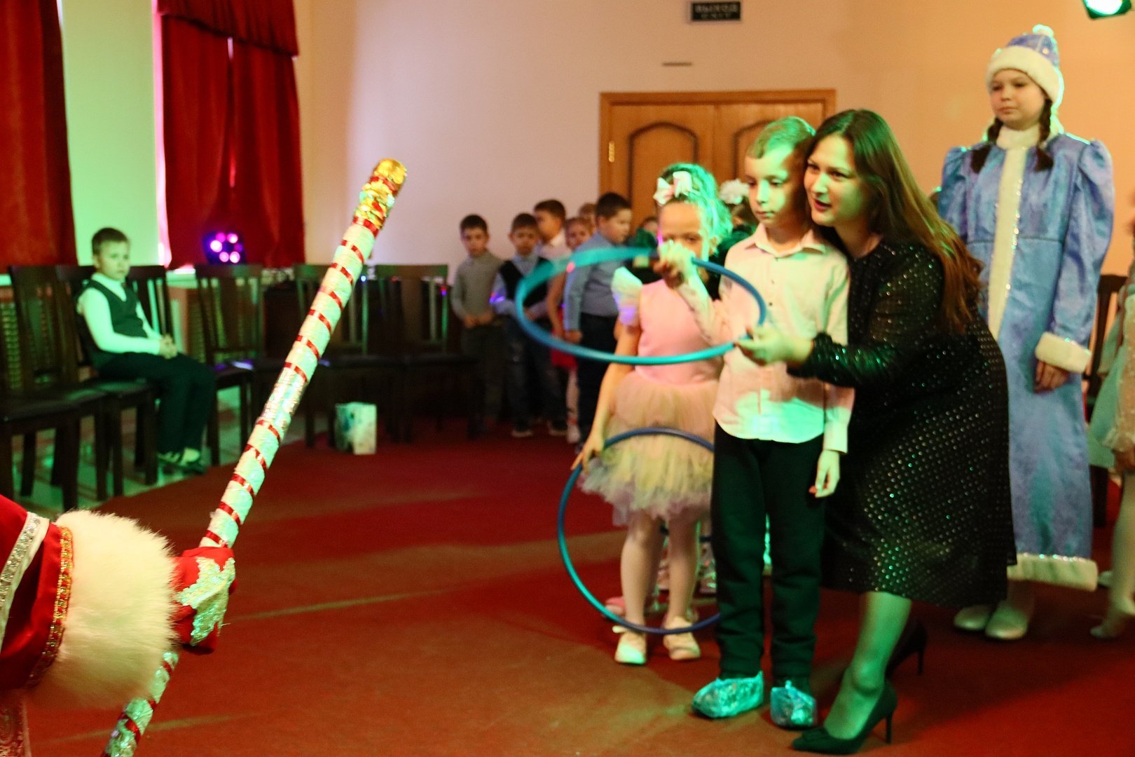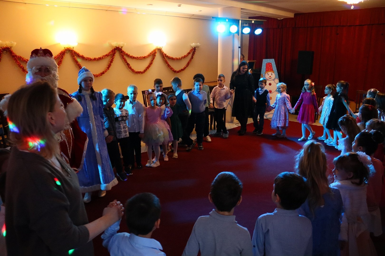 Дети пришли нарядные, весёлые в предвкушении праздника и чудес. Их надежды оправдались, с самого начала мероприятия главные волшебники - Дед Мороз и Снегурочка - участники театральной студии «Спектр» (руководитель Сенадская Елена Викторовна) увлекли детей в праздничную атмосферу приключений и волшебства.