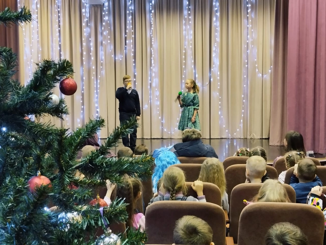 Юные зрители с первых минут очутились в интересной поучительной сказке, с увлечением следили за новогодними приключениями Маши и Вити.