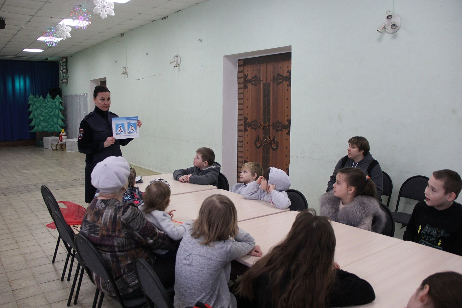 Капитан полиции Закурдаева Екатерина Владимировна побеседовала с ребятами об особенностях поведения вблизи проезжей части в зимний период, сигналах светофора, безопасных пешеходных переходах и использовании световозвращателей.
