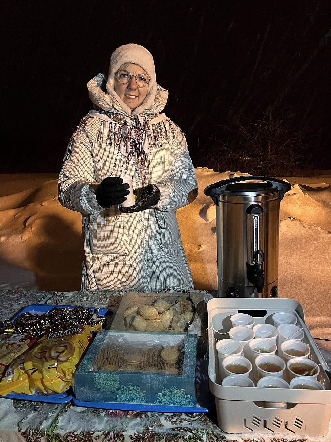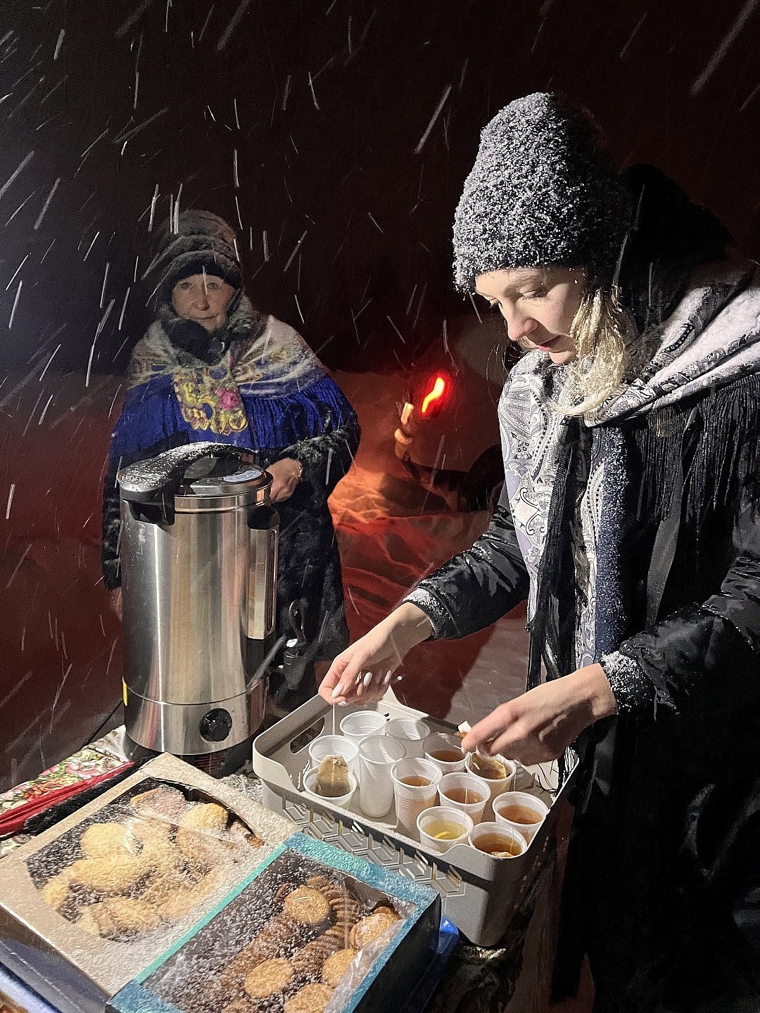 Сотрудники Дома культуры р. п. Хорлово угощали жителей и гостей поселка горячим сладким чаем на пруду в парке посёлка, где все желающие смогли окунуться в освященную воду с 23.00 до 02.00 в специально оборудованную и подготовленную купель на освещенной территории, рядом с которой был предусмотрен пункт обогрева.