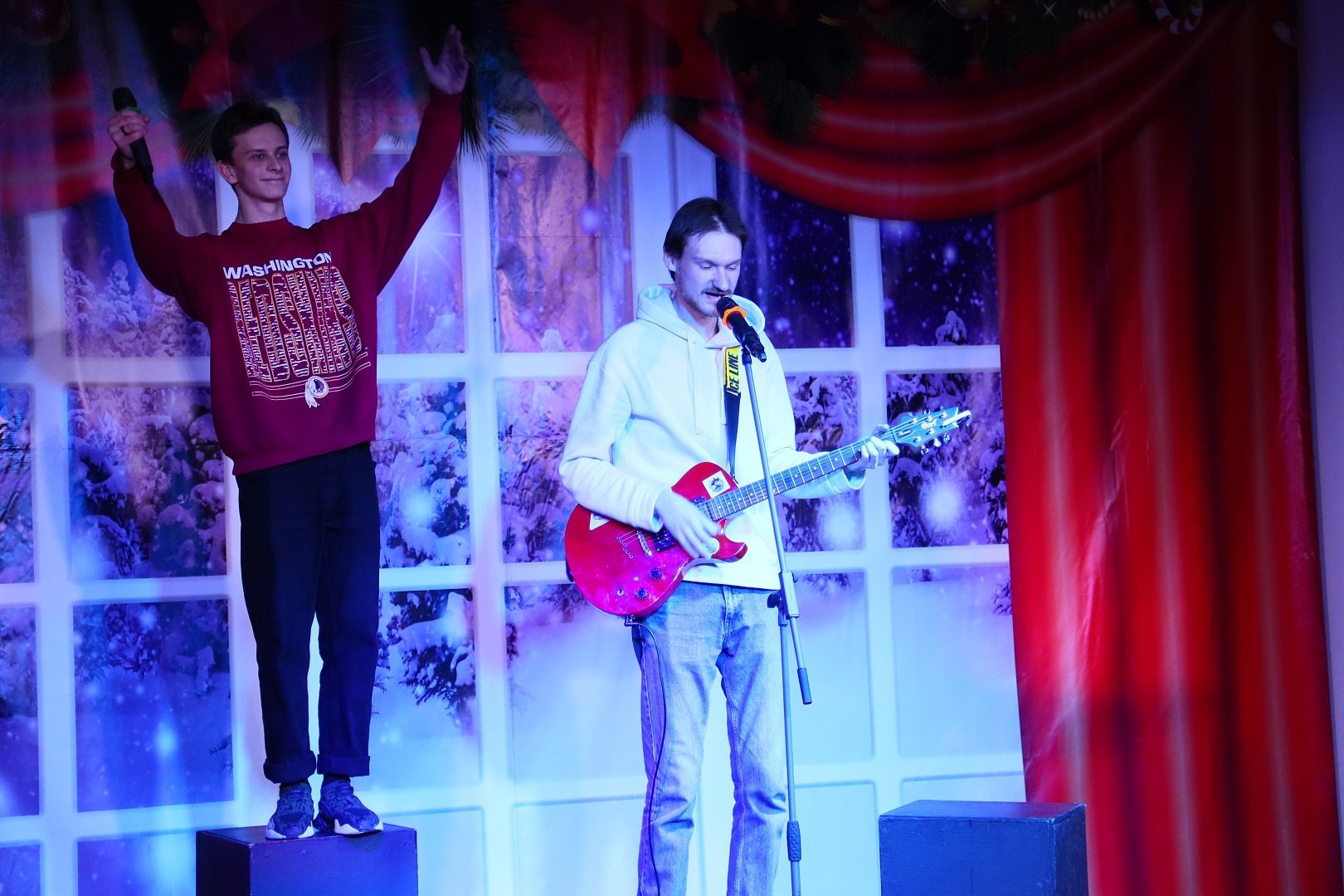 В программе принимали участие: Дмитрий Филиппов, Алексей Глазунов (участники театральной студии «Открытие», руководитель Л.А. Филиппова), Константин Байбаков (участник народного коллектива «Вокальный ансамбль «Созвездие», руководитель А. Е. Комарова), а также, Никита Ручий, Сергей Ратничкин (г. Москва). В уютной молодежной компании прозвучали песни под гитару о добре, любви, замечательном времени года – зиме.