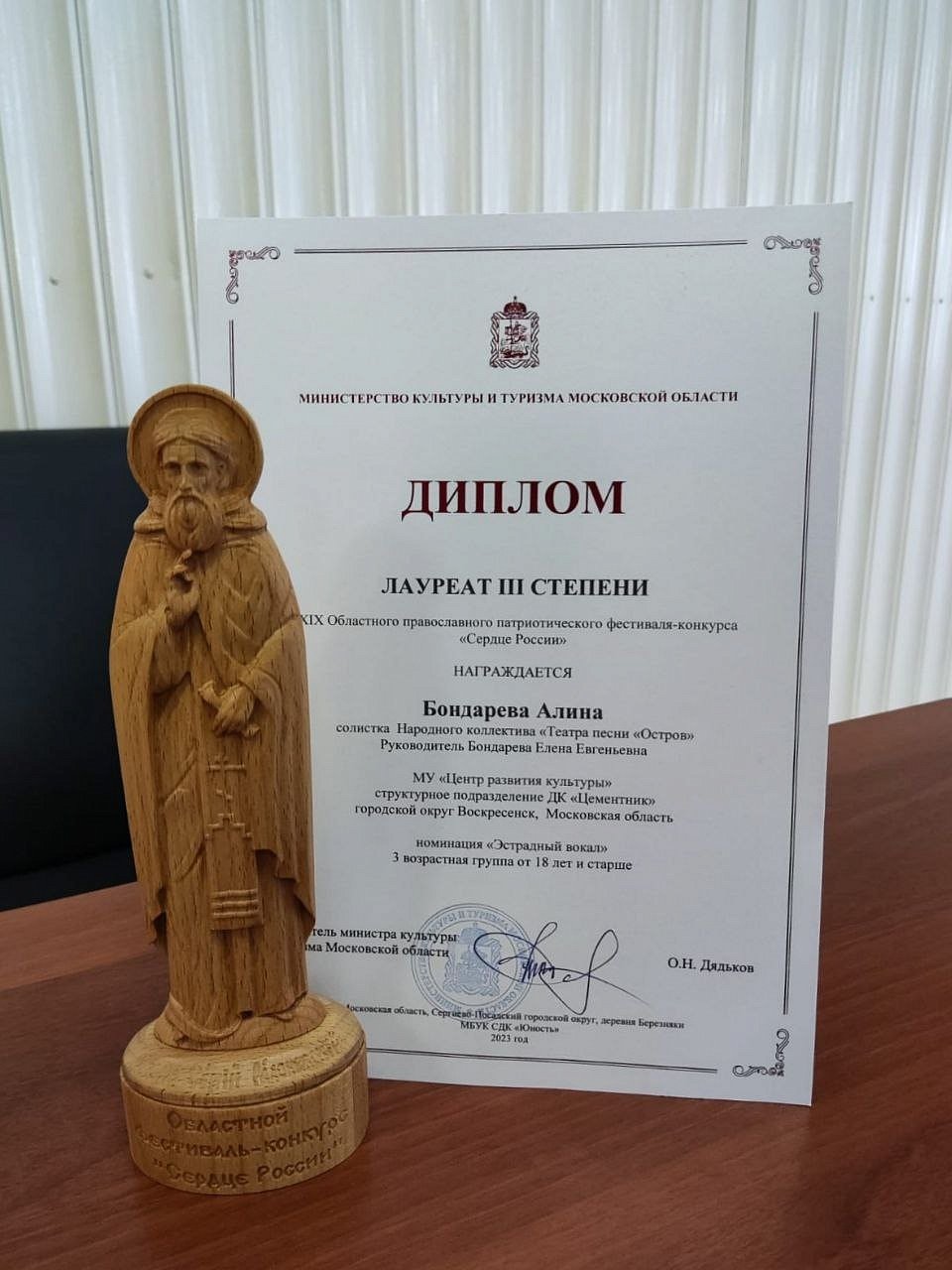Народный коллектив «Театр песни «Остров» побывал в православном центре Золотого кольца. Подмосковный Сергиев Посад стал местом проведения XIX областного православного патриотического фестиваля-конкурса «Сердце России». Более 300 человек из 19 городских округов Московской области, вокалисты из Ленинградской области, Санкт-Петербурга, Перми и Брянска стали участниками. Лауреаты фестиваля дали два гала-концерта. Первый прошёл в СДК «Юность», второй – в городском парке «Скитские пруды». Среди этих счастливчиков и вокалисты Народного коллектива «Театр песни «Остров»: